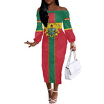 African Ghana Off The Shoulder Long Sleeve Dress Flag with Coat of Arms Simple Design TS04