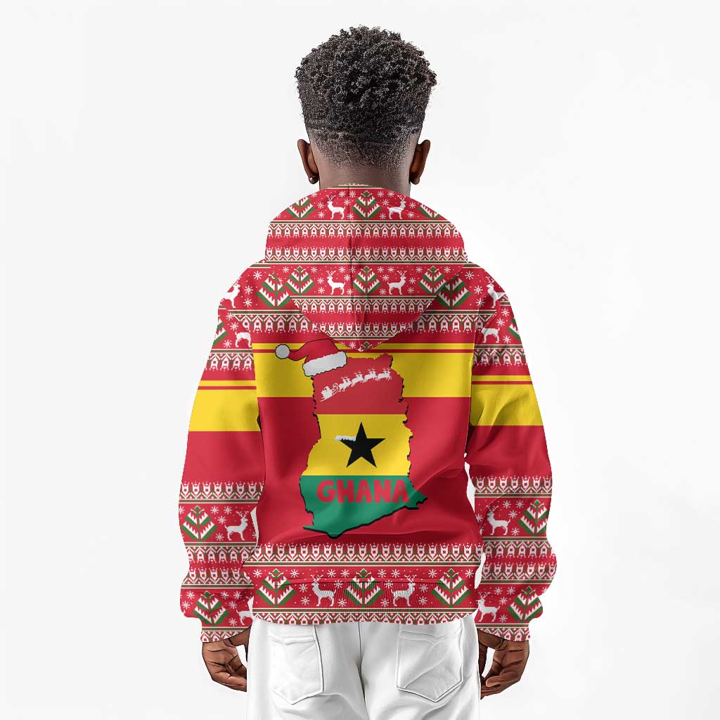 Ghana Christmas Kid Hoodie Monkey Holding Gift Ghana Map and Festive