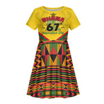 Ghana Independence Day Kid Short Sleeve Dress with Freedom and Justice and African Pattern