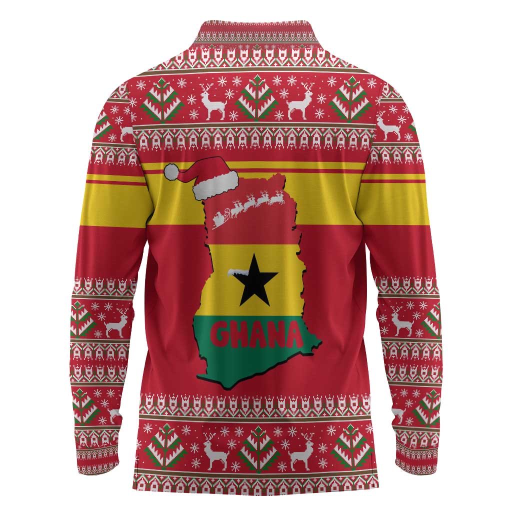 Ghana Christmas Long Sleeve Polo Shirt Monkey Holding Gift Ghana Map and Festive