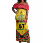 Ghana Independence Day Off Shoulder Maxi Dress with Freedom and Justice and African Pattern