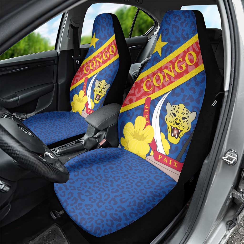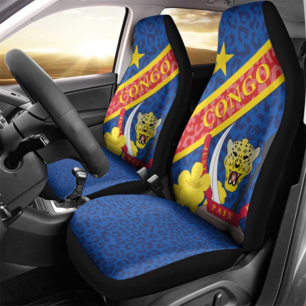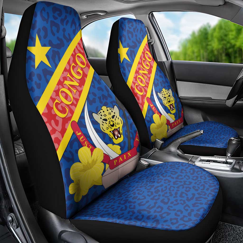 Congo DR Car Seat Cover Coat Of Arms Leopard Pattern