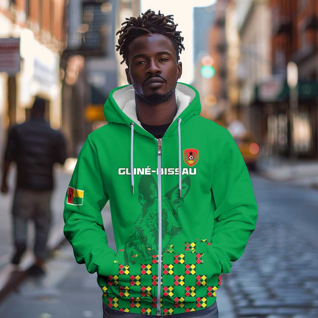 Custom Guinea Bissau Football Zip Hoodie African Wild Dog - Go Djurtus