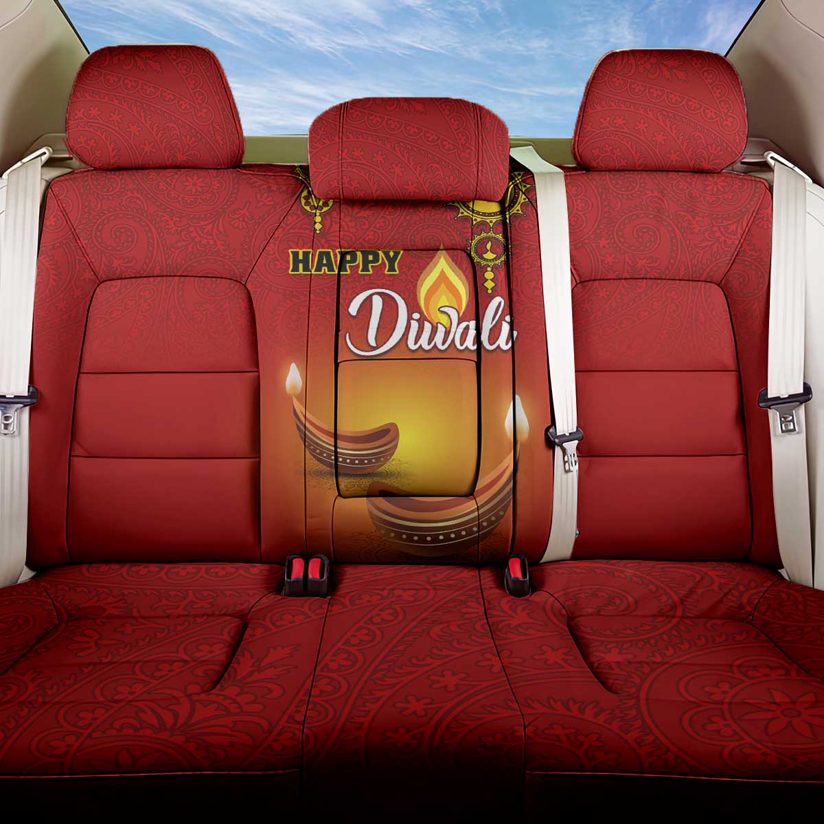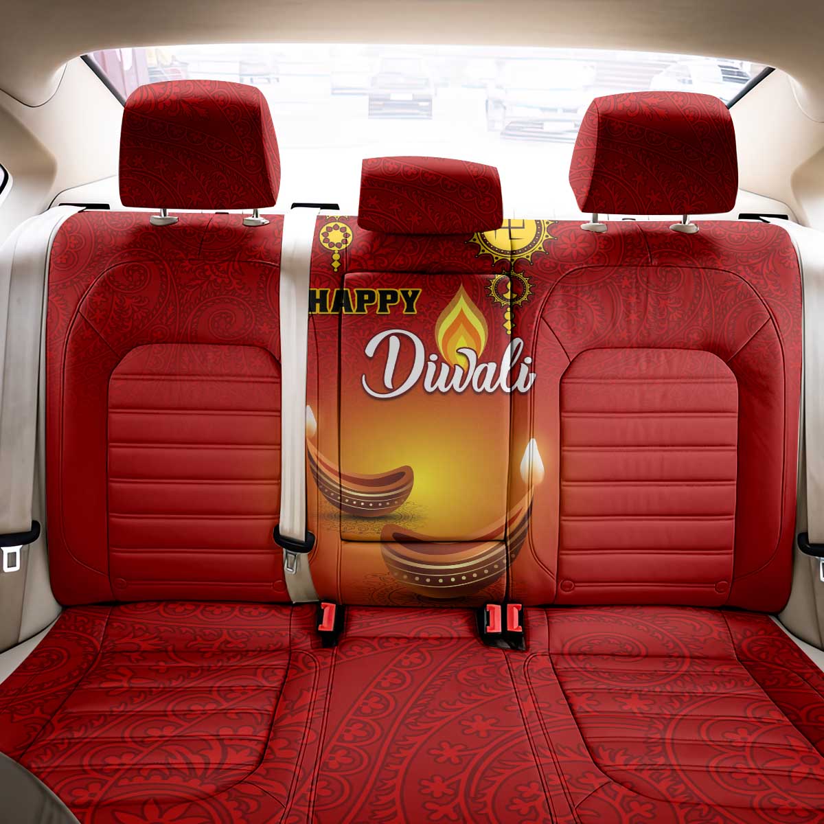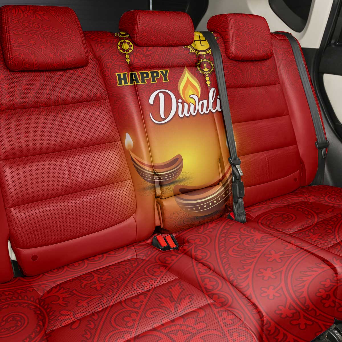 Diwali Festival Back Car Seat Cover with Diya and Paisley Pattern