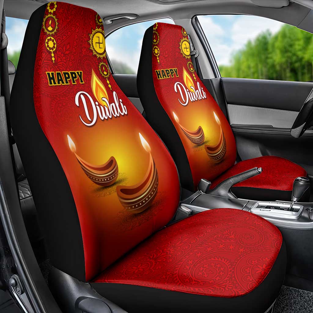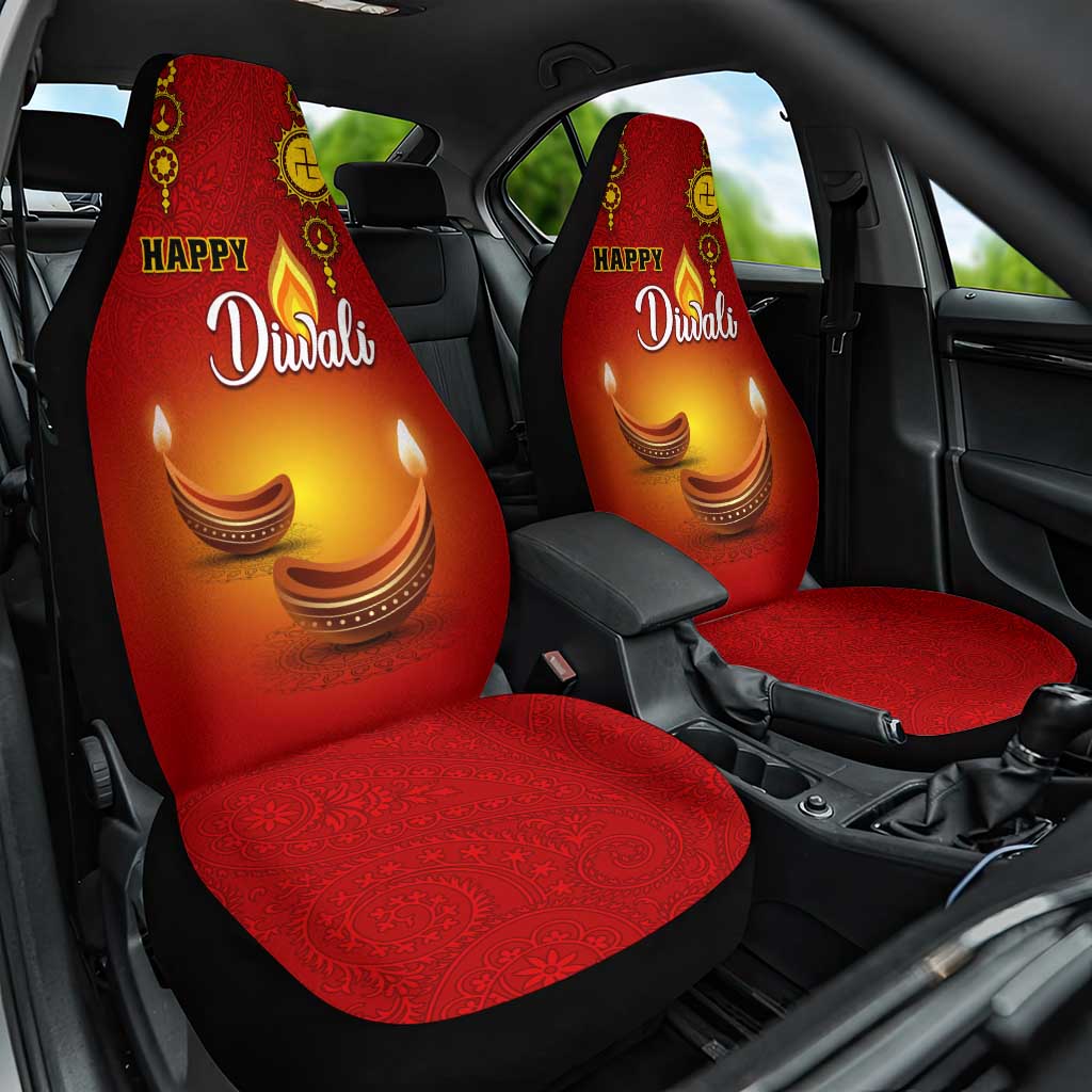 Diwali Festival Car Seat Cover with Diya and Paisley Pattern