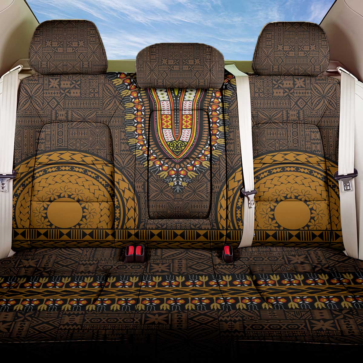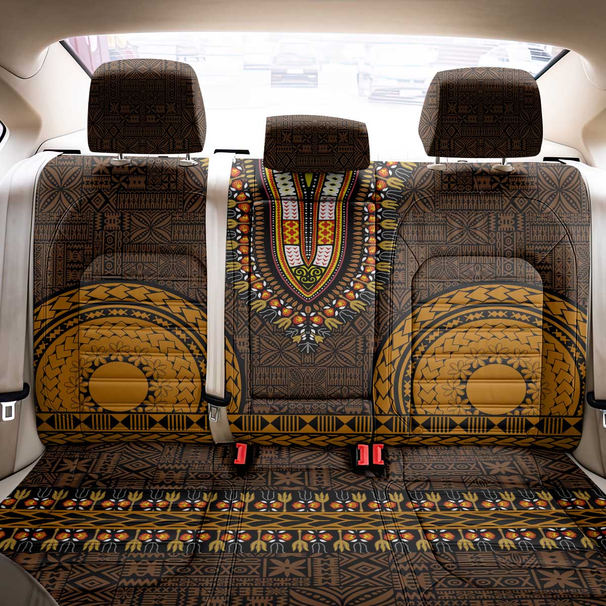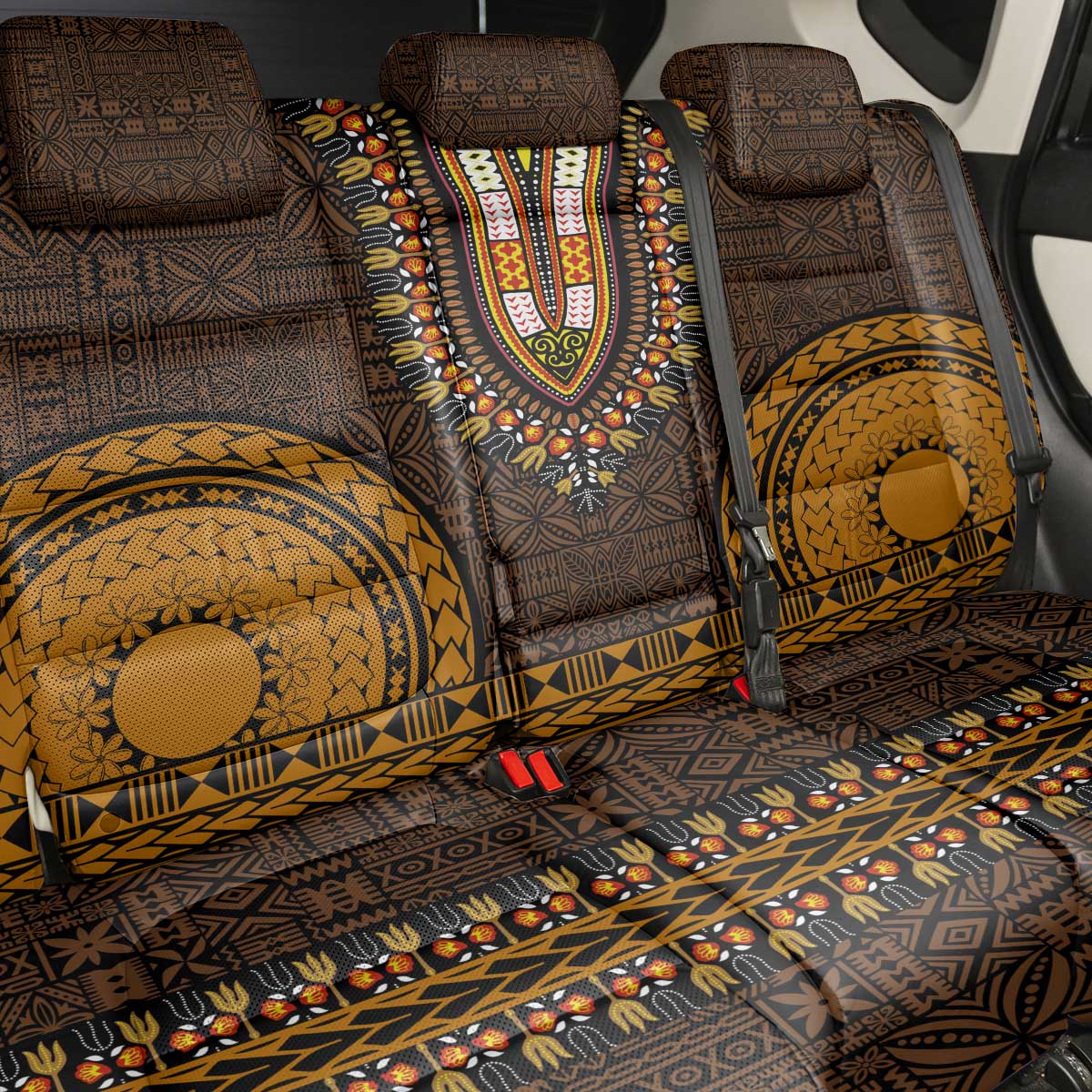 Gold Dashiki and Tapa Pattern Back Car Seat Cover Africa-Polynesia Together Culture