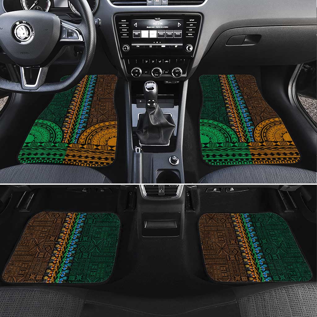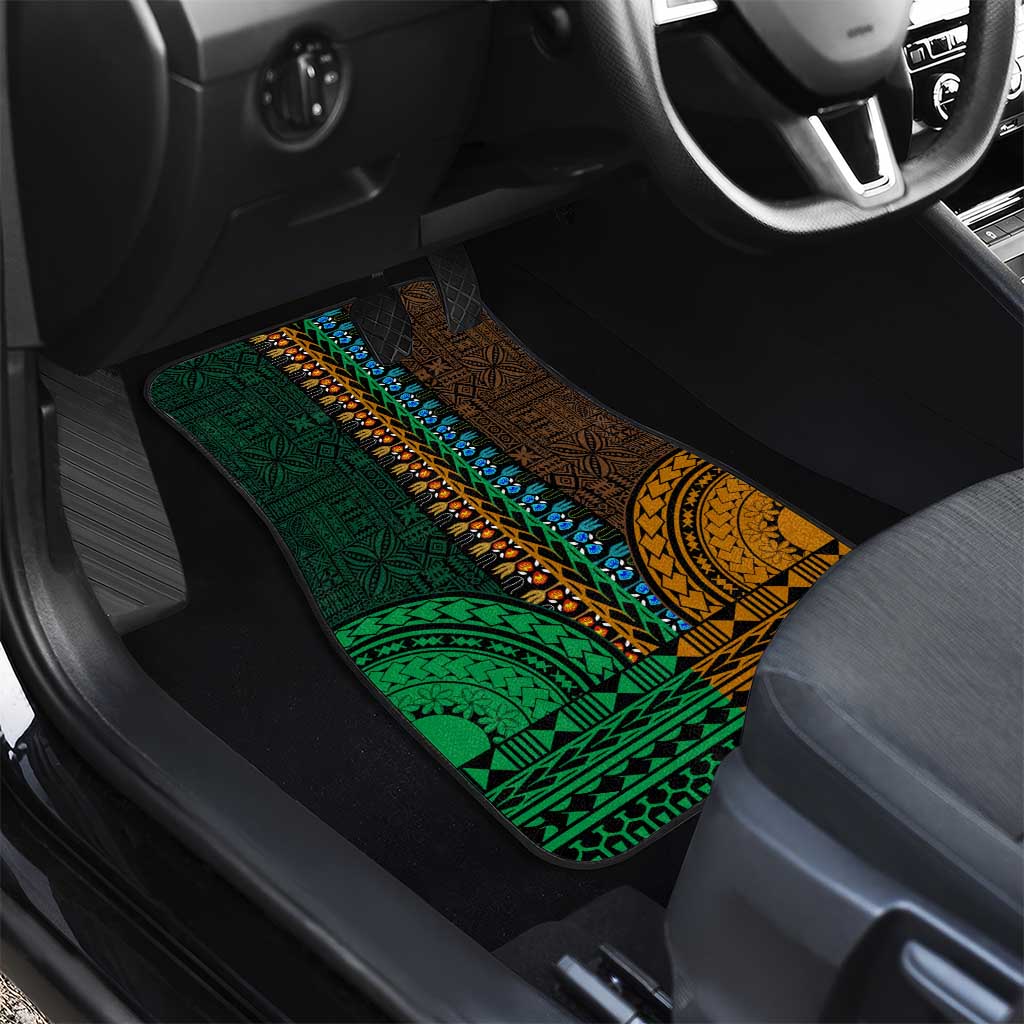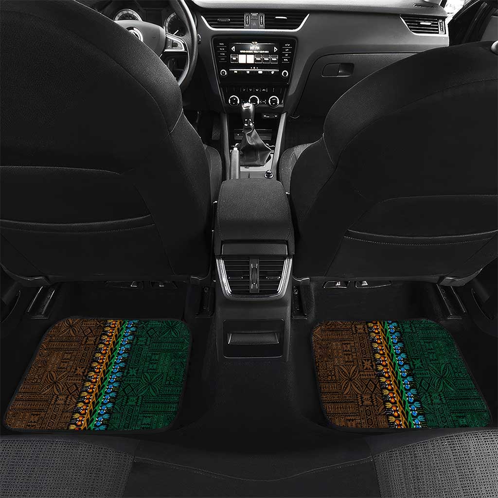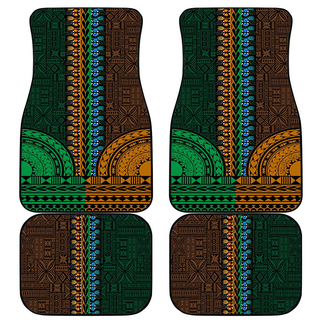 Green-gold Dashiki and Tapa Pattern Car Mats Africa-Polynesia Together Culture