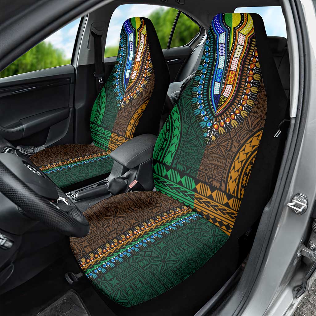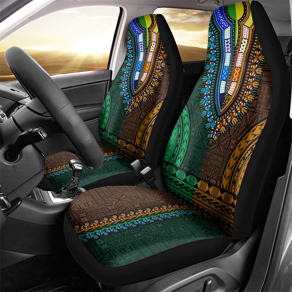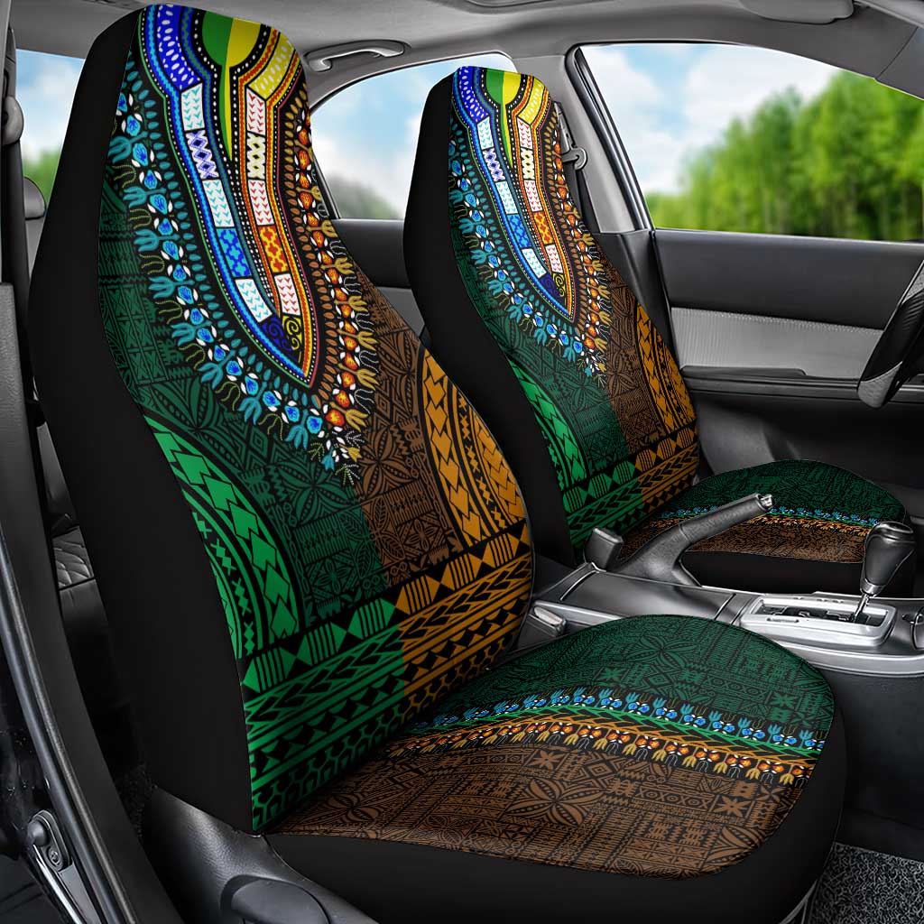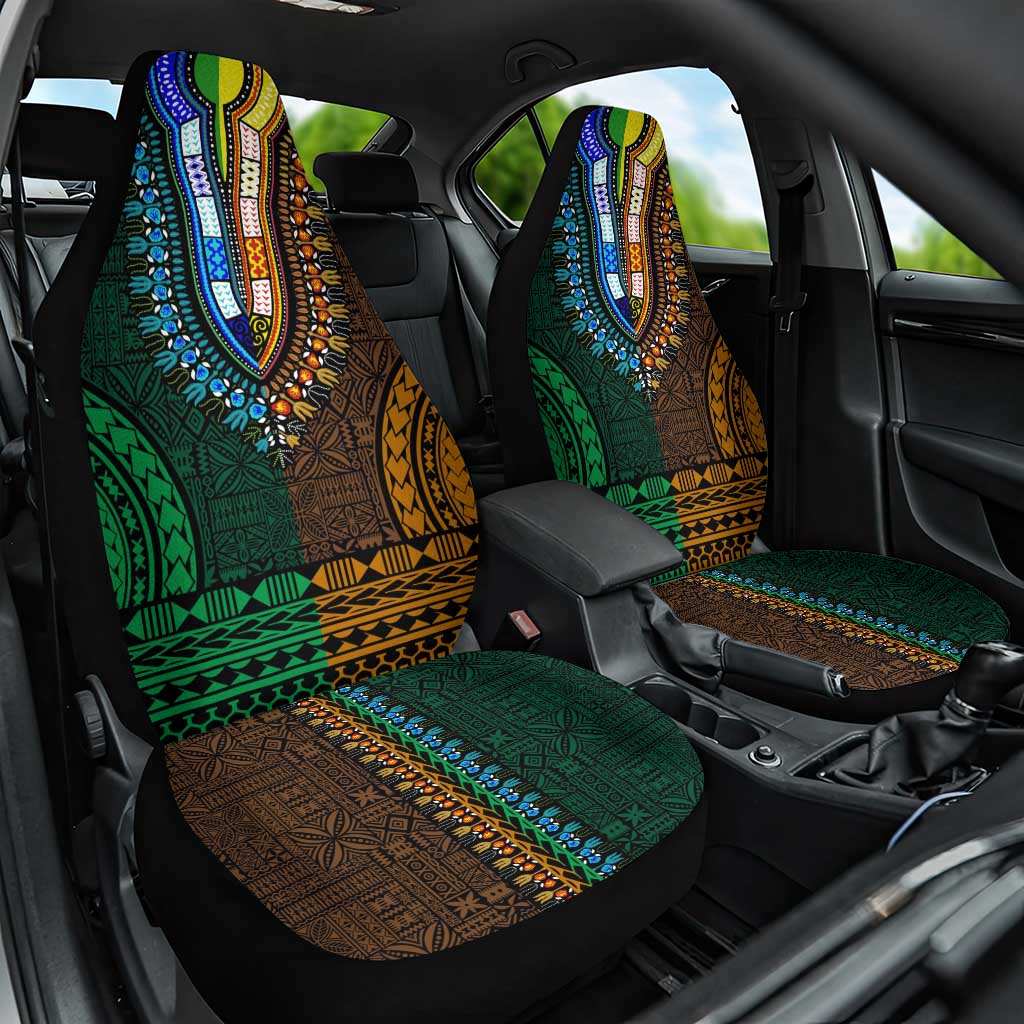 Green-gold Dashiki and Tapa Pattern Car Seat Cover Africa-Polynesia Together Culture