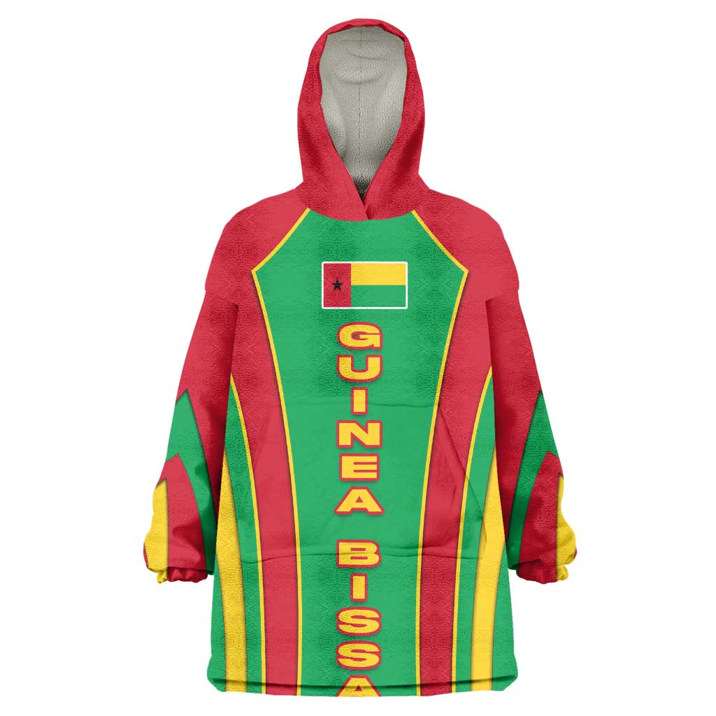 Guinea Bissau Kid Wearable Blanket Hoodie Red Green Yellow Stripe Design and Black Star