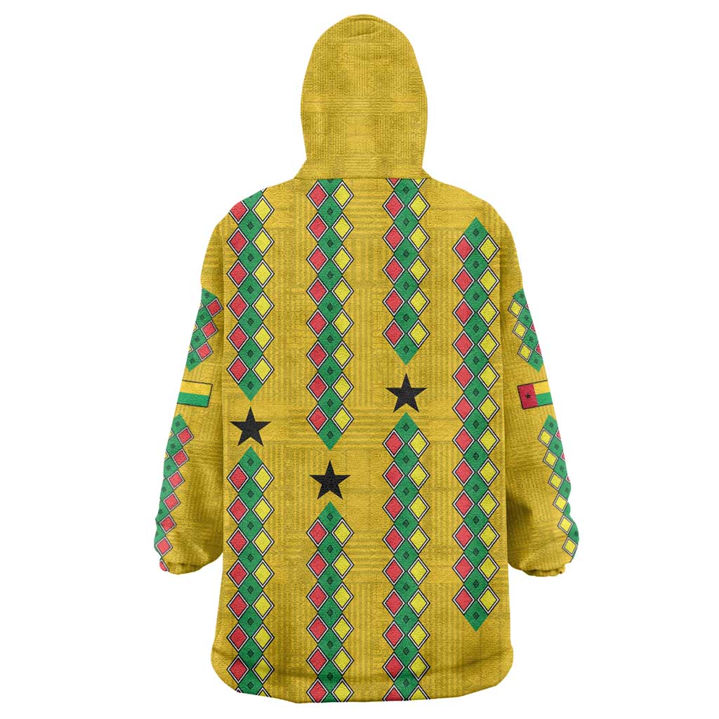Guinea Bissau Kid Wearable Blanket Hoodie Yellow Tribal Geometric Design and National Flag