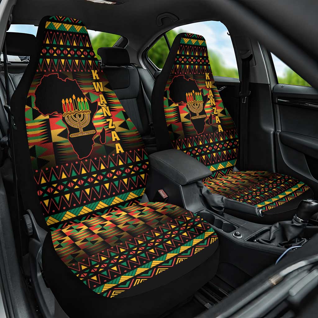 Kwanzaa Festival Car Seat Cover with Kinara Candles and African Pattern