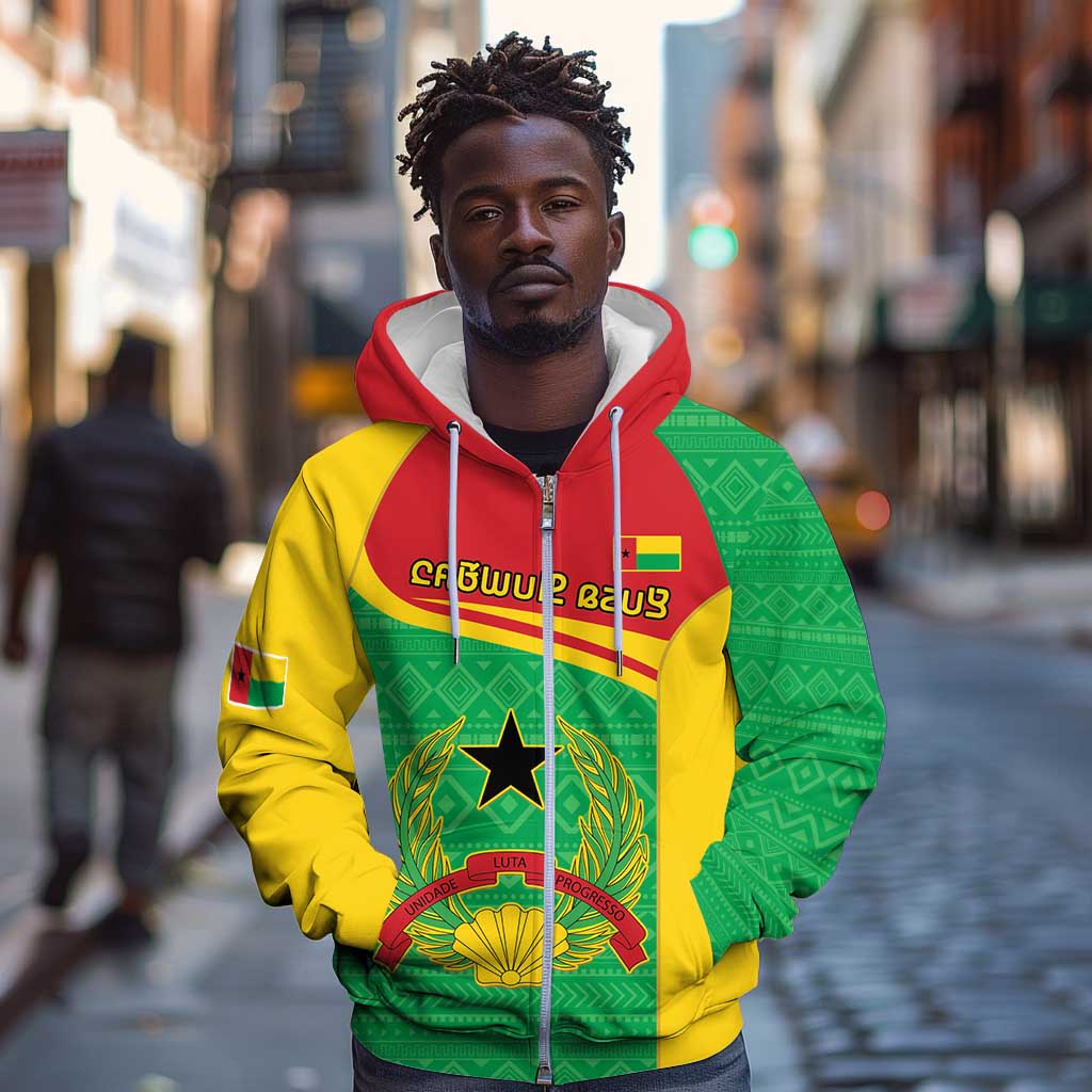 Personalised Afro Guinea Bissau Zip Hoodie Coat Of Arms Mix African Pattern