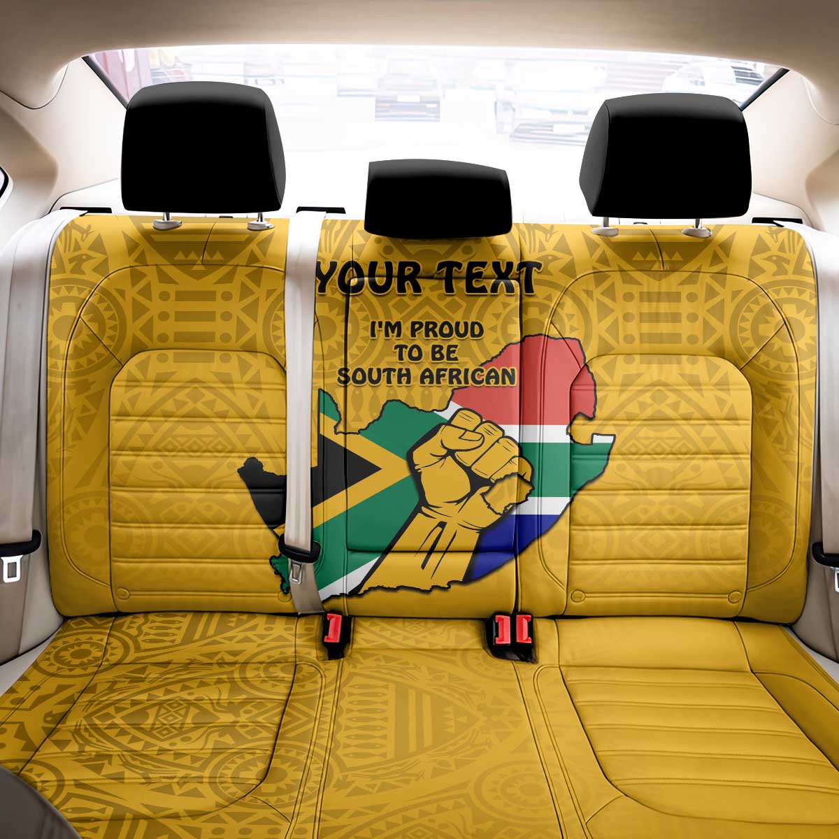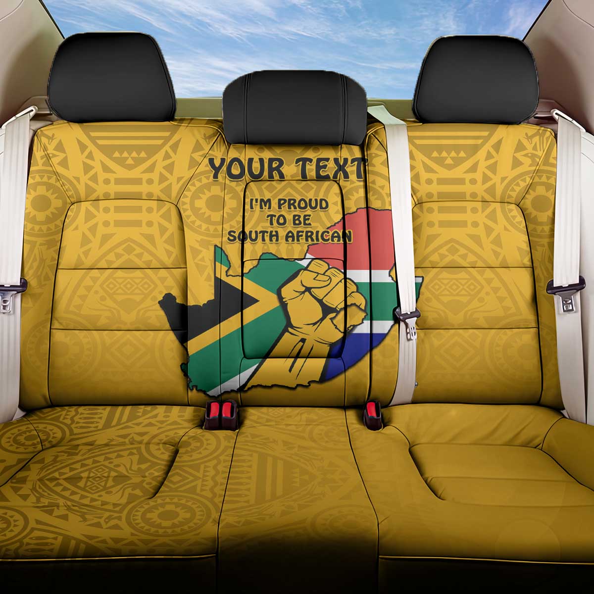 Personalised South Africa Back Car Seat Cover African Pattern Happy Freedom Day Yellow Version