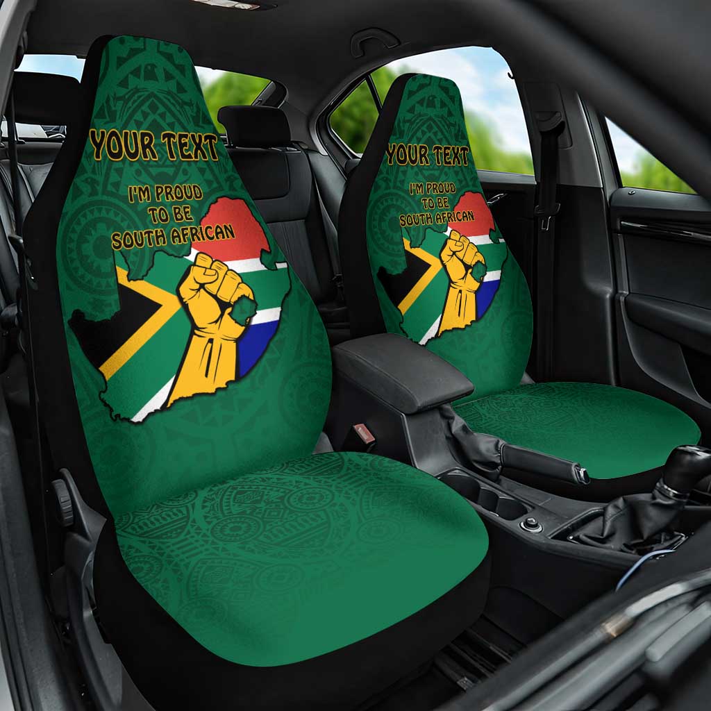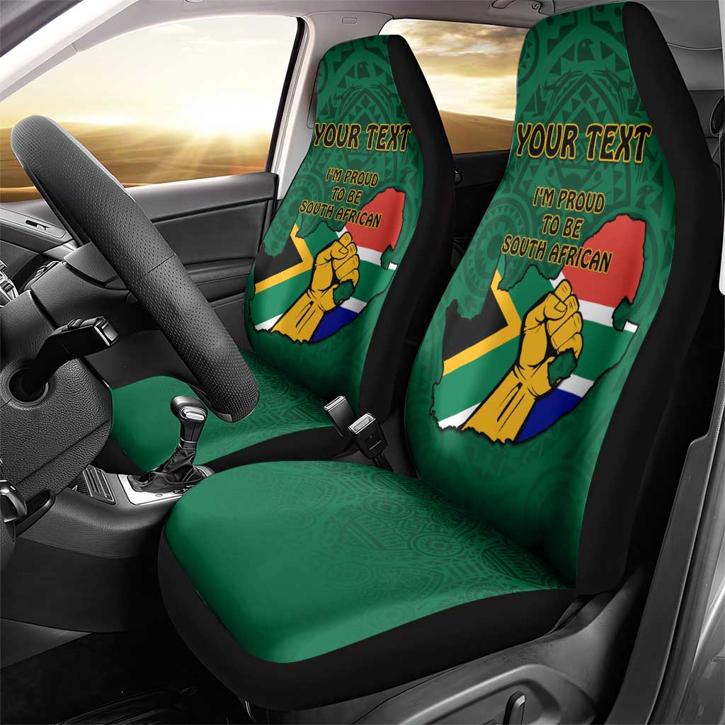 Personalised South Africa Car Seat Cover African Pattern Happy Freedom Day Green Version