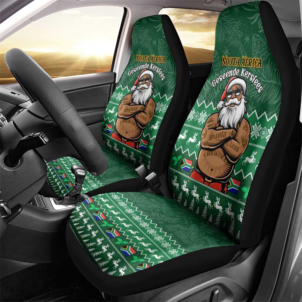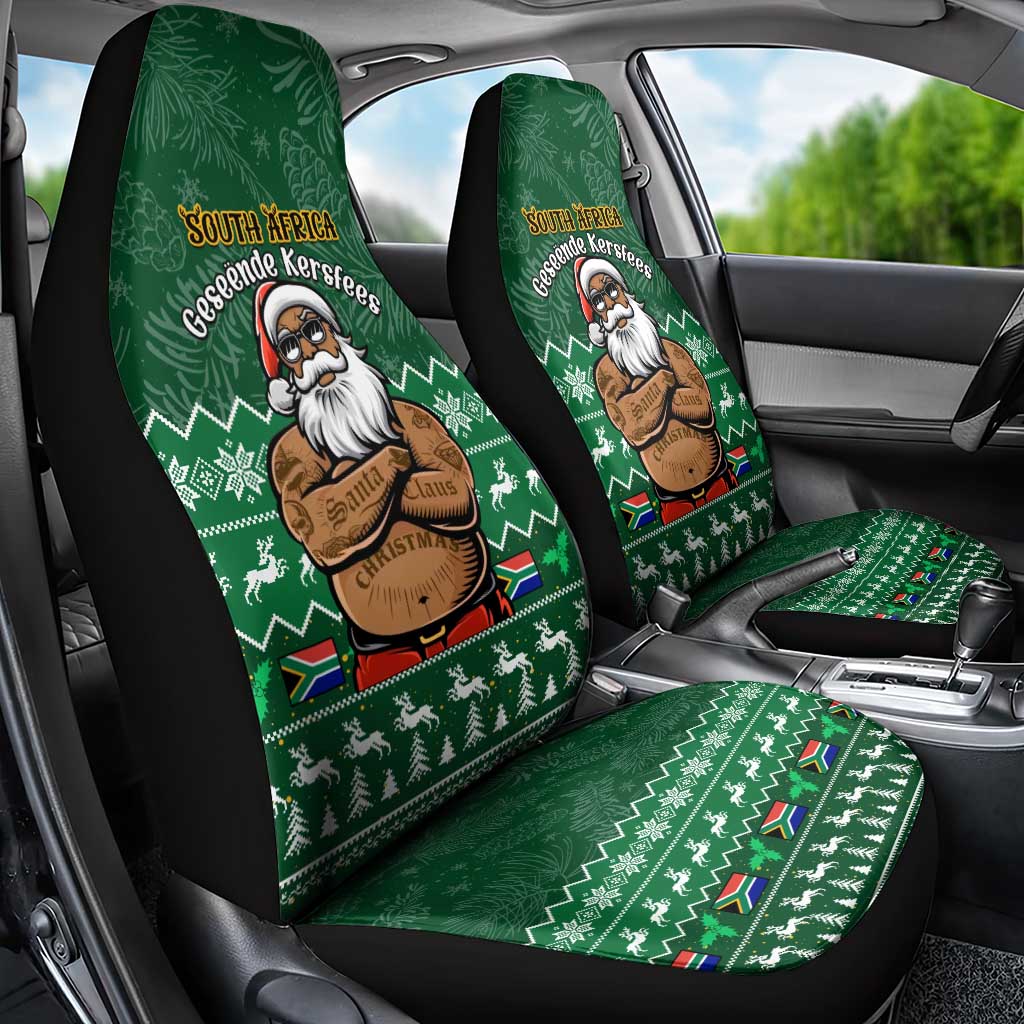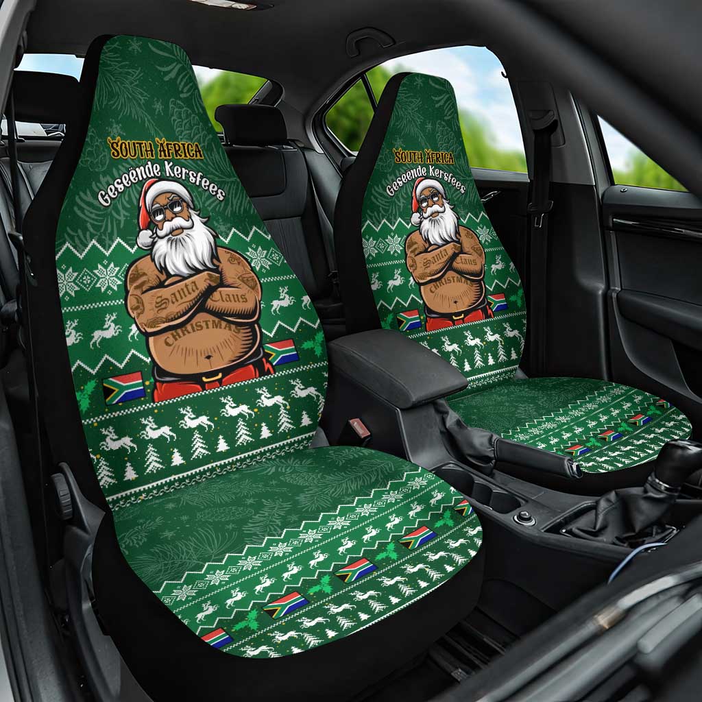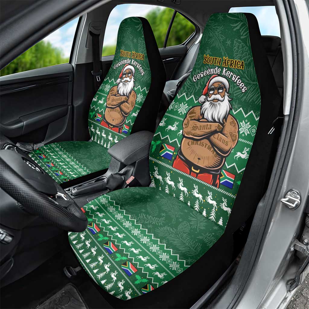 Personalised South Africa Christmas Car Seat Cover Cool Santa Claus With South African Map