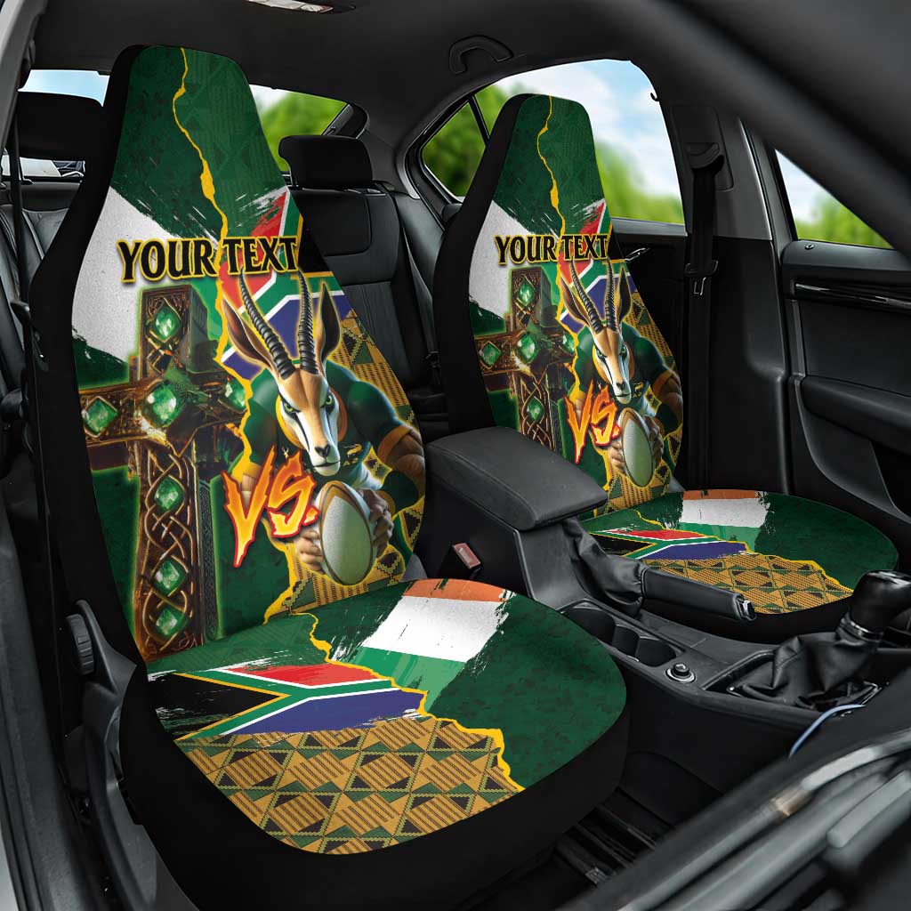Personalized South Africa Versus Ireland Rugby Car Seat Cover - Springbok Mascot, Celtic Cross Design