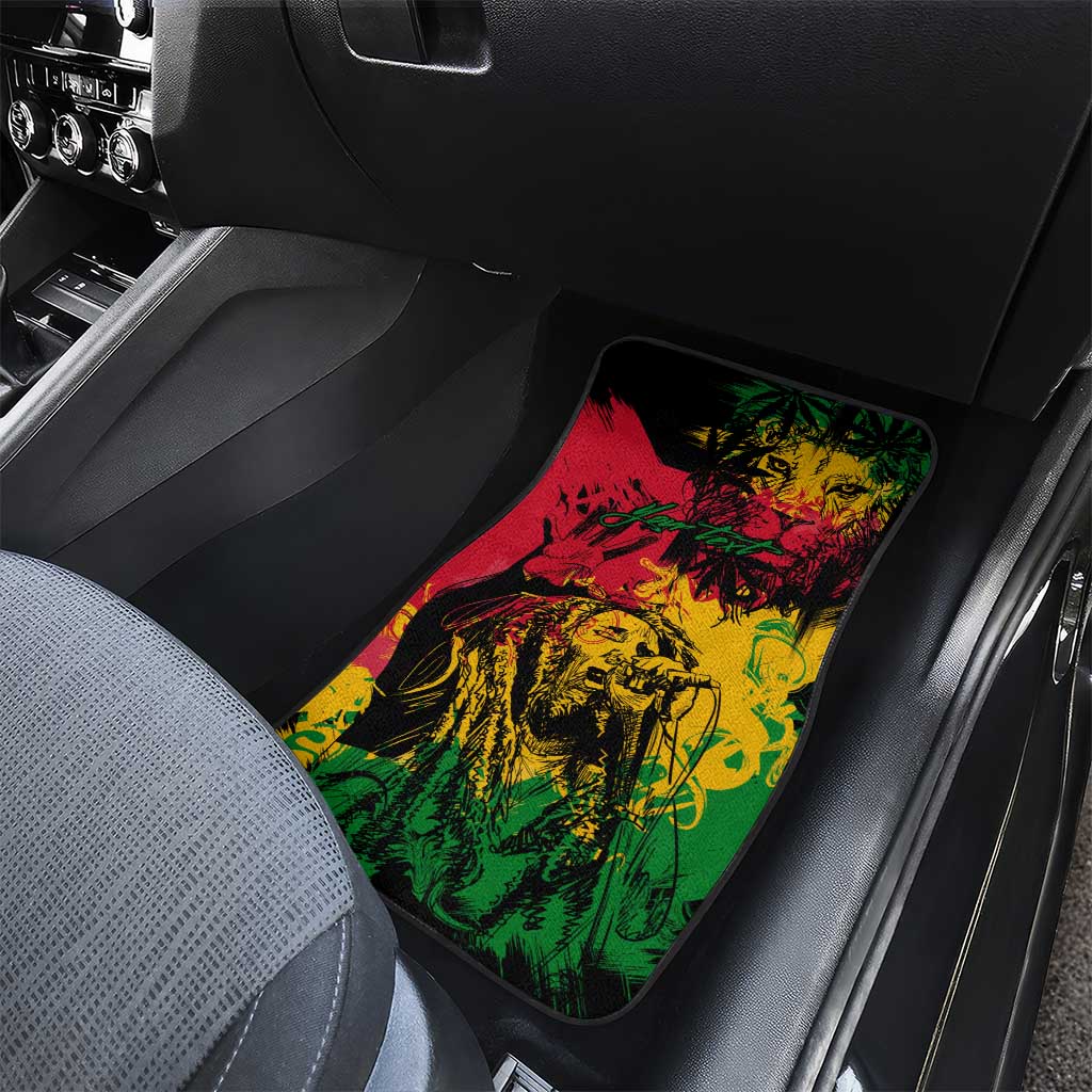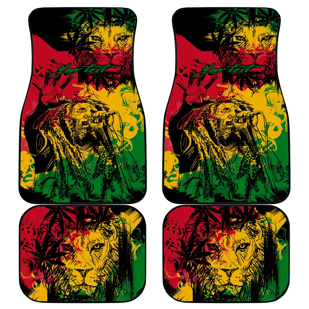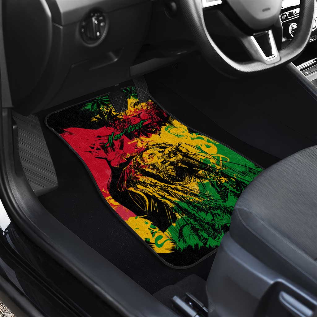 Rastafarian Lion Legend Bob Car Mats Black Jamaican Reggae Festival Sketch Portrait
