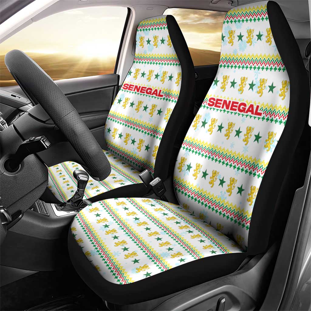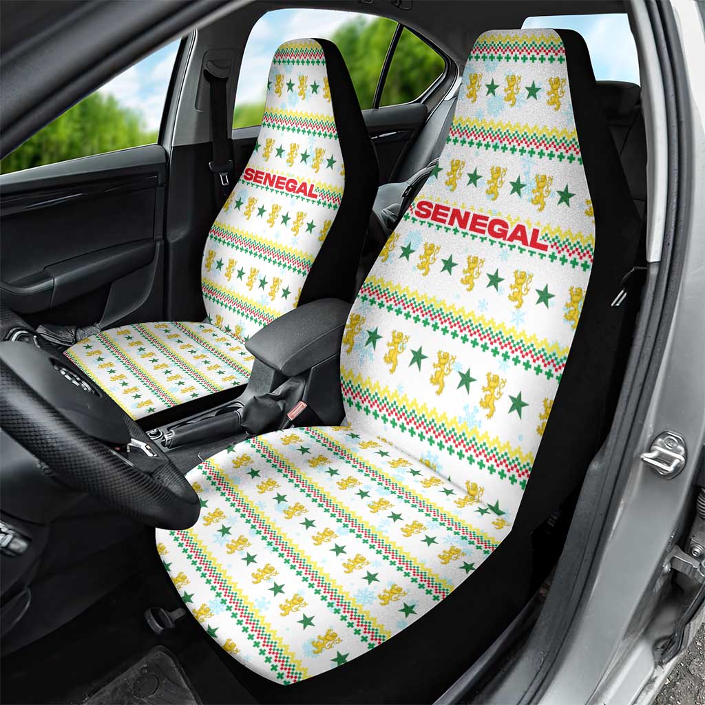 Senegal Christmas Car Seat Cover Golden Lion and Festive Stars Motif