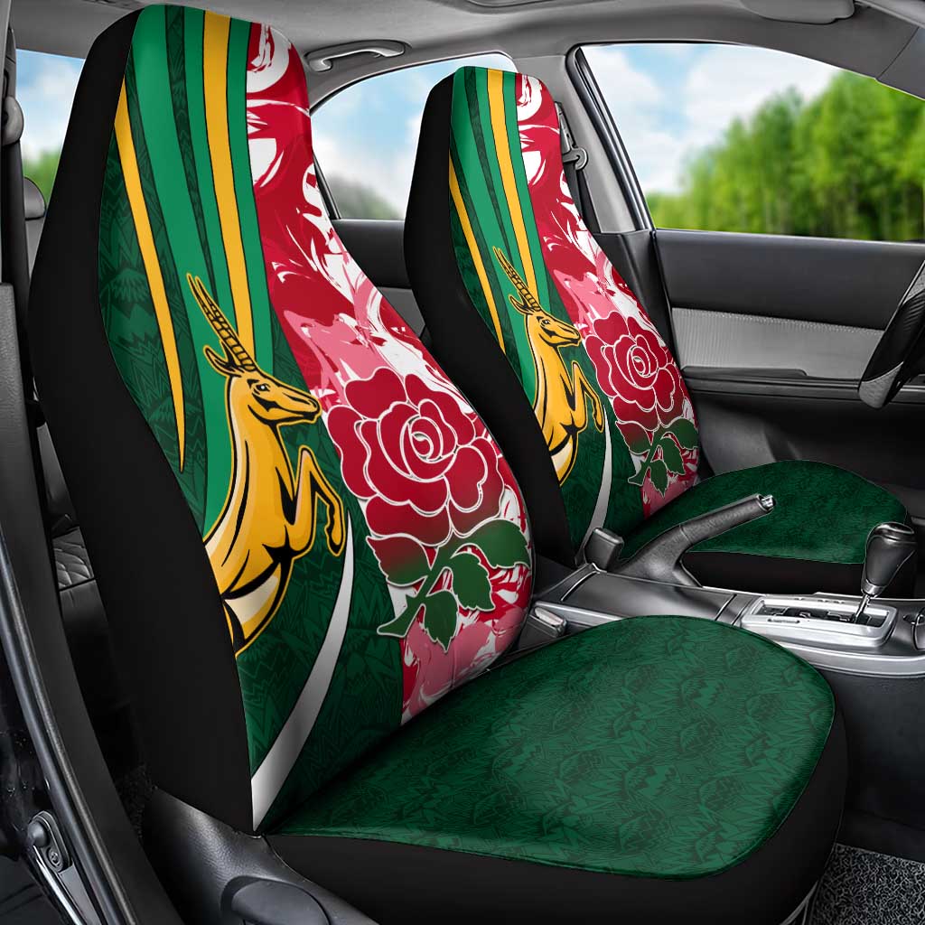 South Africa and England Rugby Car Seat Cover - The Red Rose with Protea Pattern