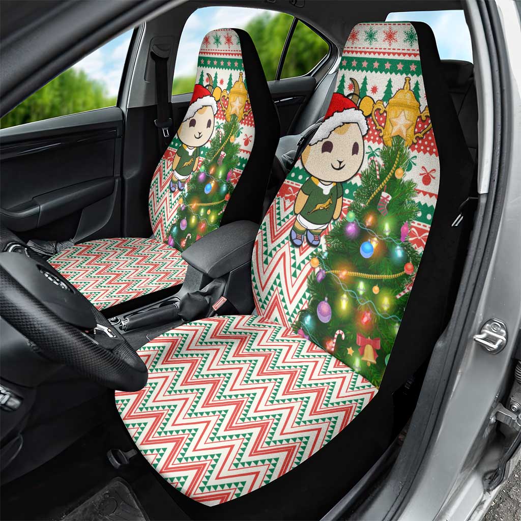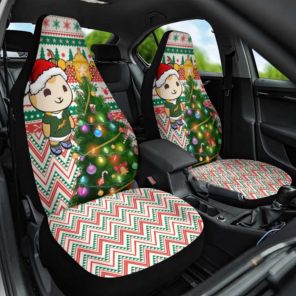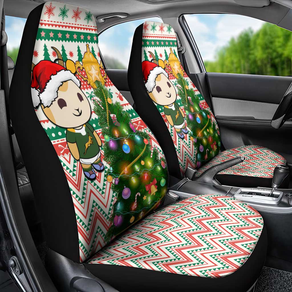 South Africa Rugby Christmas Car Seat Cover with Cute Springbok and Christmas Tree