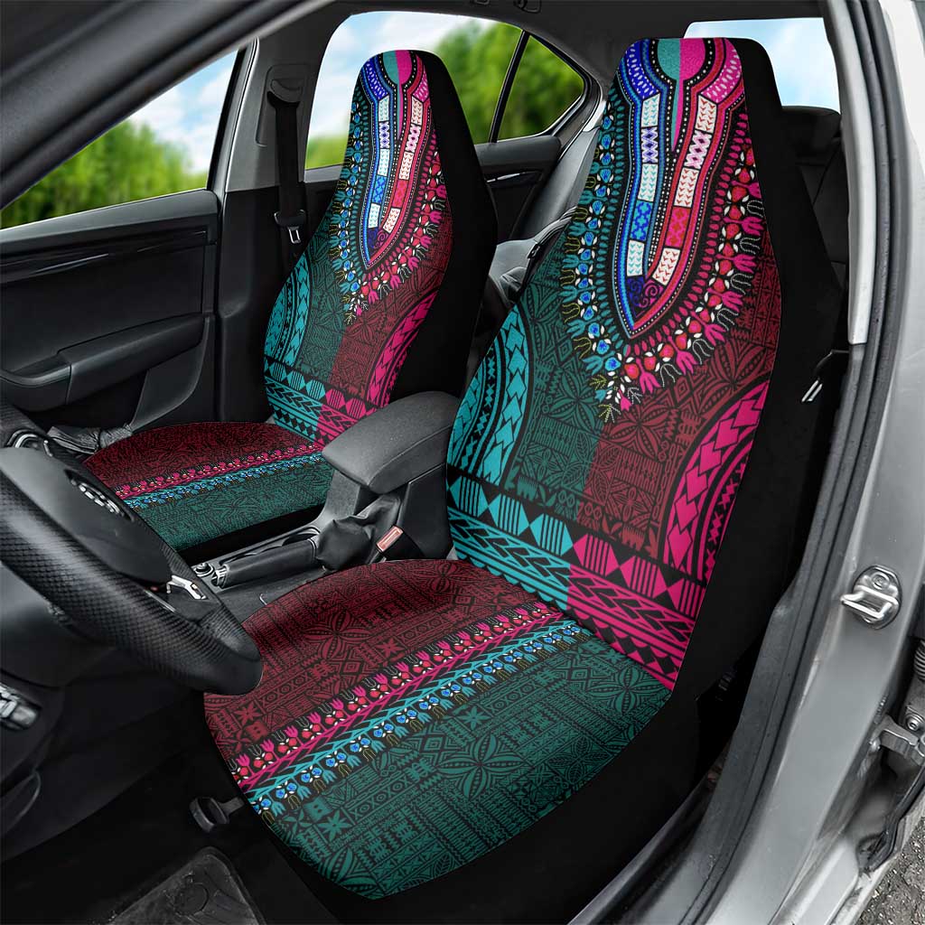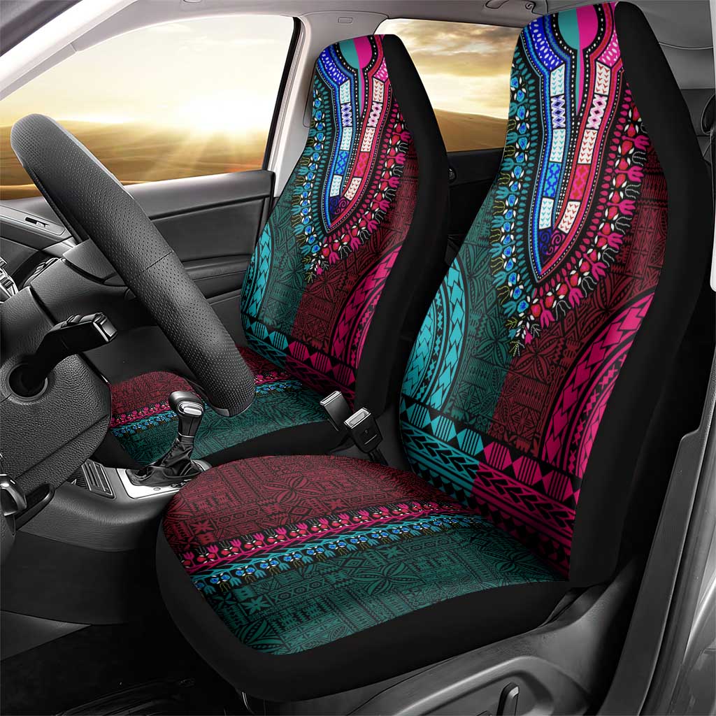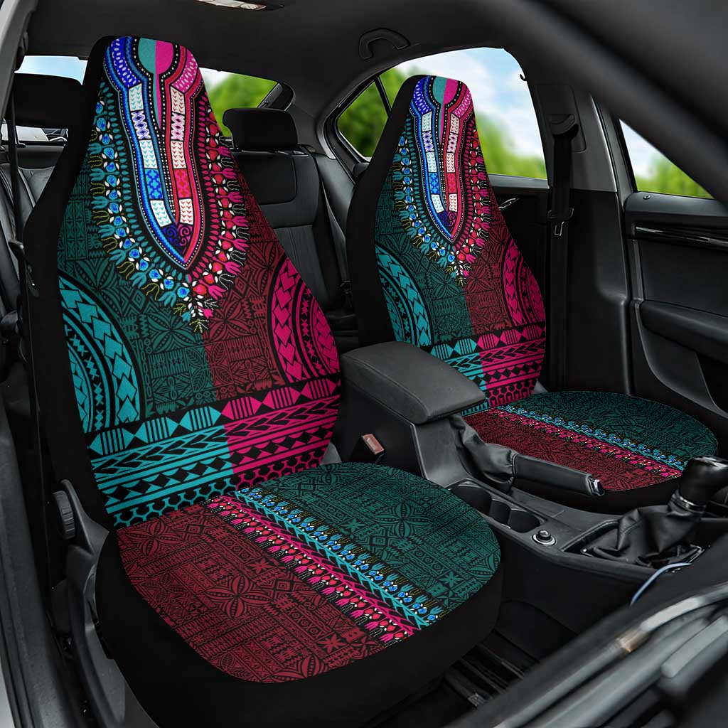 Teal-pink Dashiki and Tapa Pattern Car Seat Cover Africa-Polynesia Together Culture