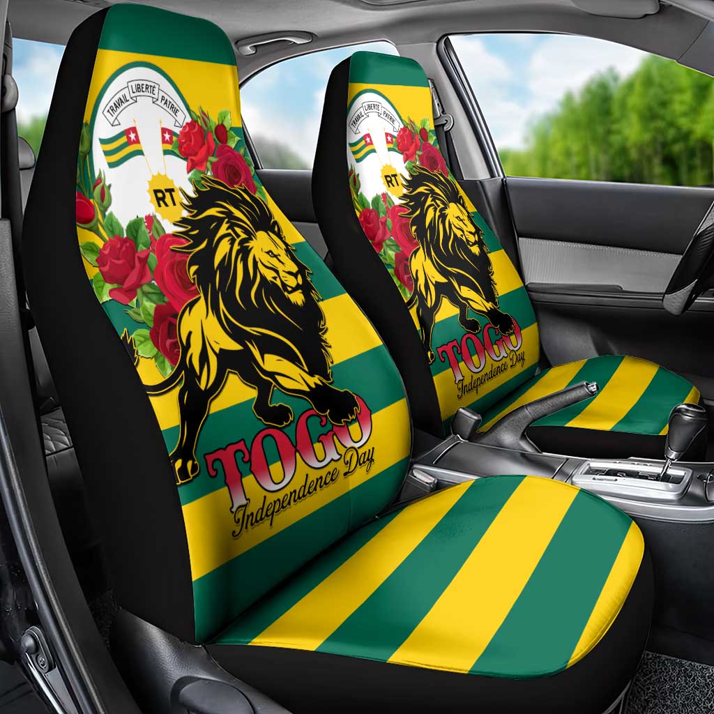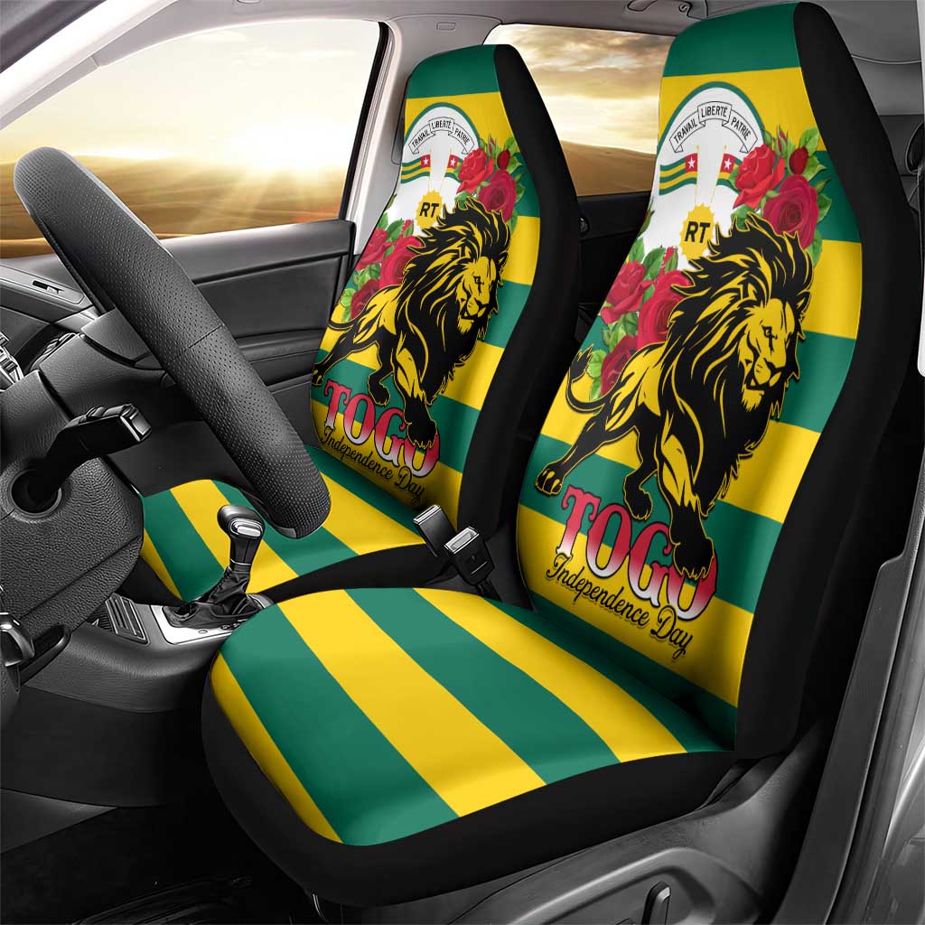 Togo Independence Day Car Seat Cover Lion With Rosa Flag Style