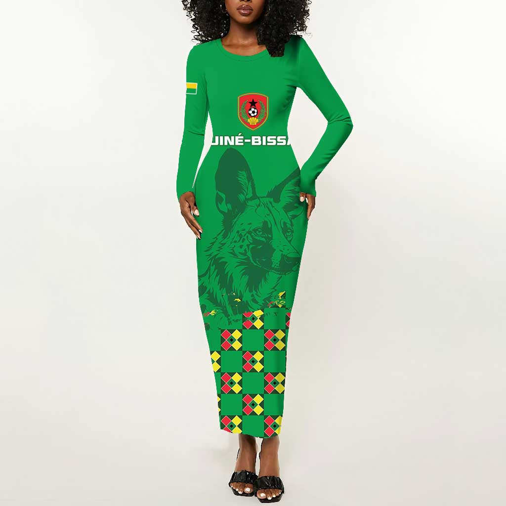 Custom Guinea Bissau Football Long Sleeve Bodycon Dress African Wild Dog - Go Djurtus