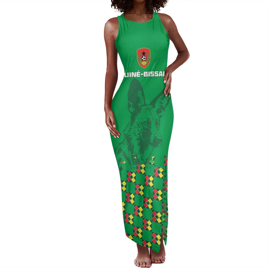 Custom Guinea Bissau Football Tank Maxi Dress African Wild Dog - Go Djurtus