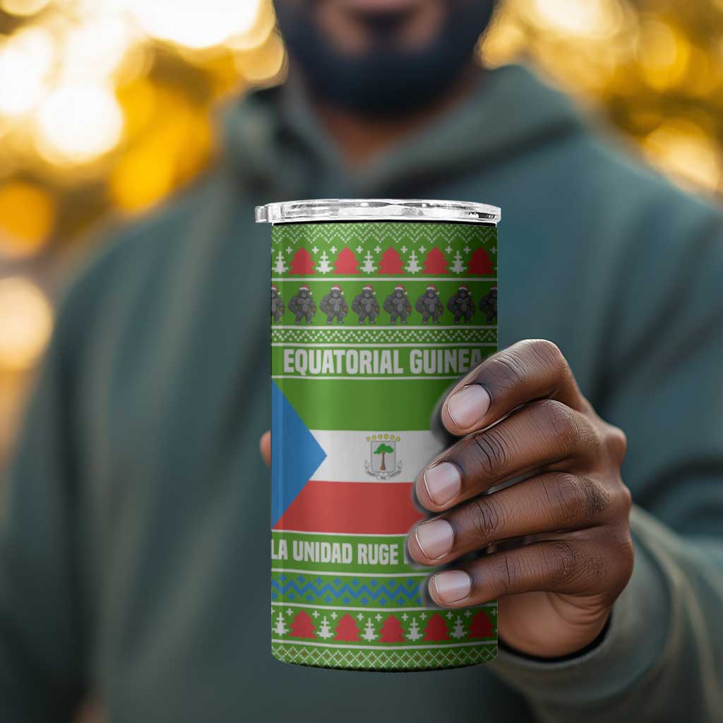 Equatorial Guinea Christmas 4 in 1 Can Cooler Tumbler Santa Gorilla Gift Basket