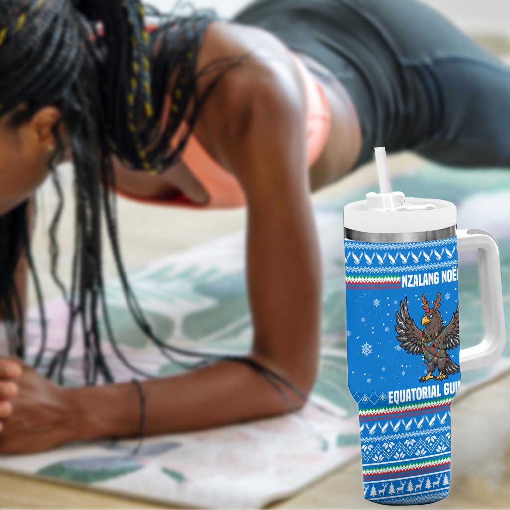 Equatorial Guinea Christmas Tumbler With Handle Nzalang Noel Eagle Flag Snowflakes