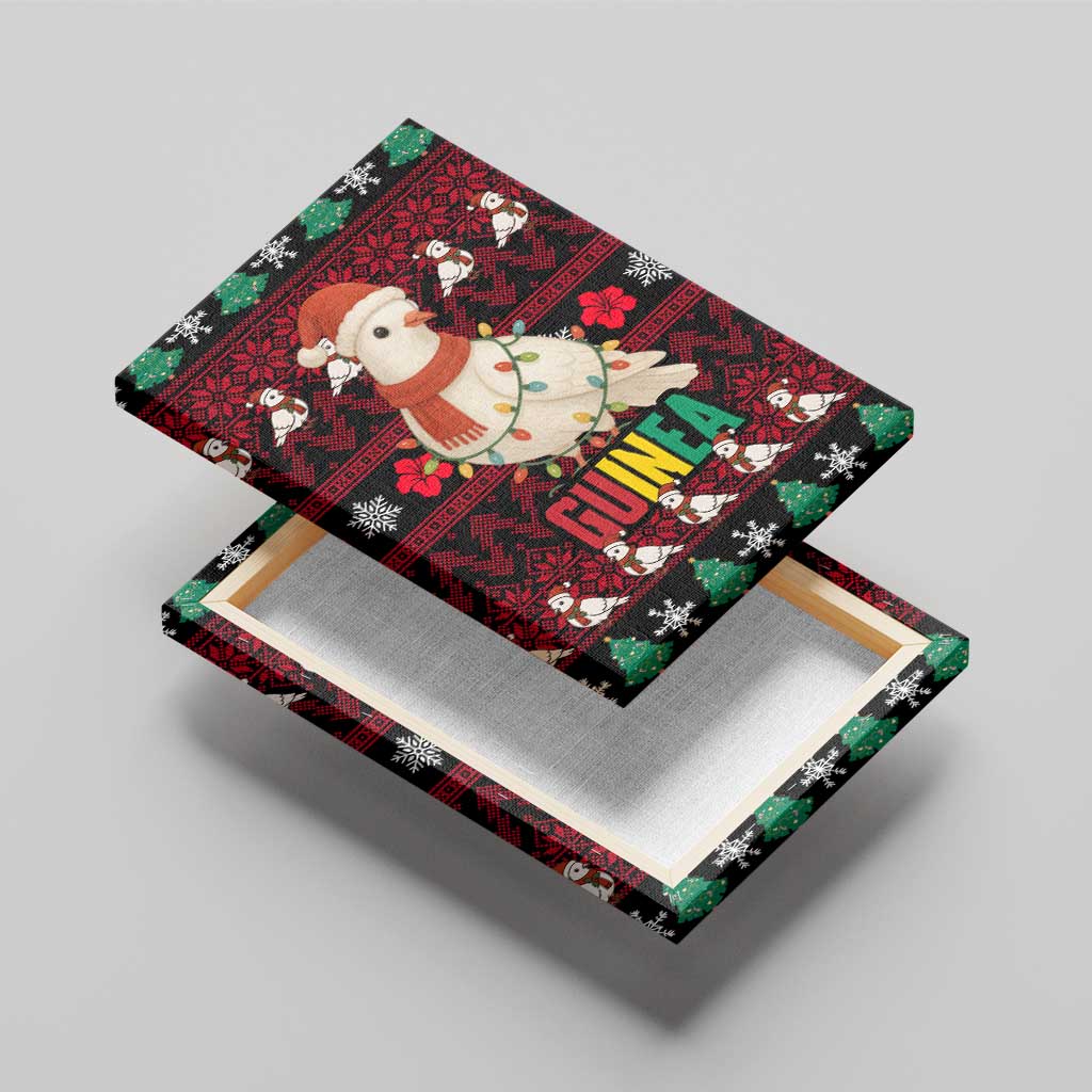 Guinea Christmas Canvas Wall Art Festive Dove String Lights and Red Black Holiday