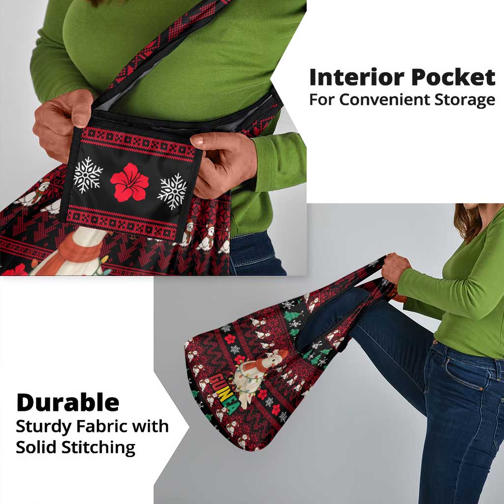 Guinea Christmas Grocery Bag Festive Dove String Lights and Red Black Holiday