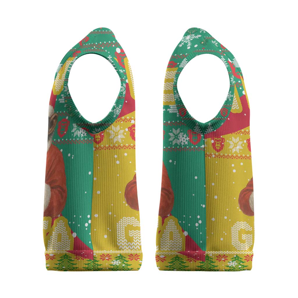 Guinea Christmas Knitted V-Neck Vest Santa Chimpanzee Heart Hands and Snowflake