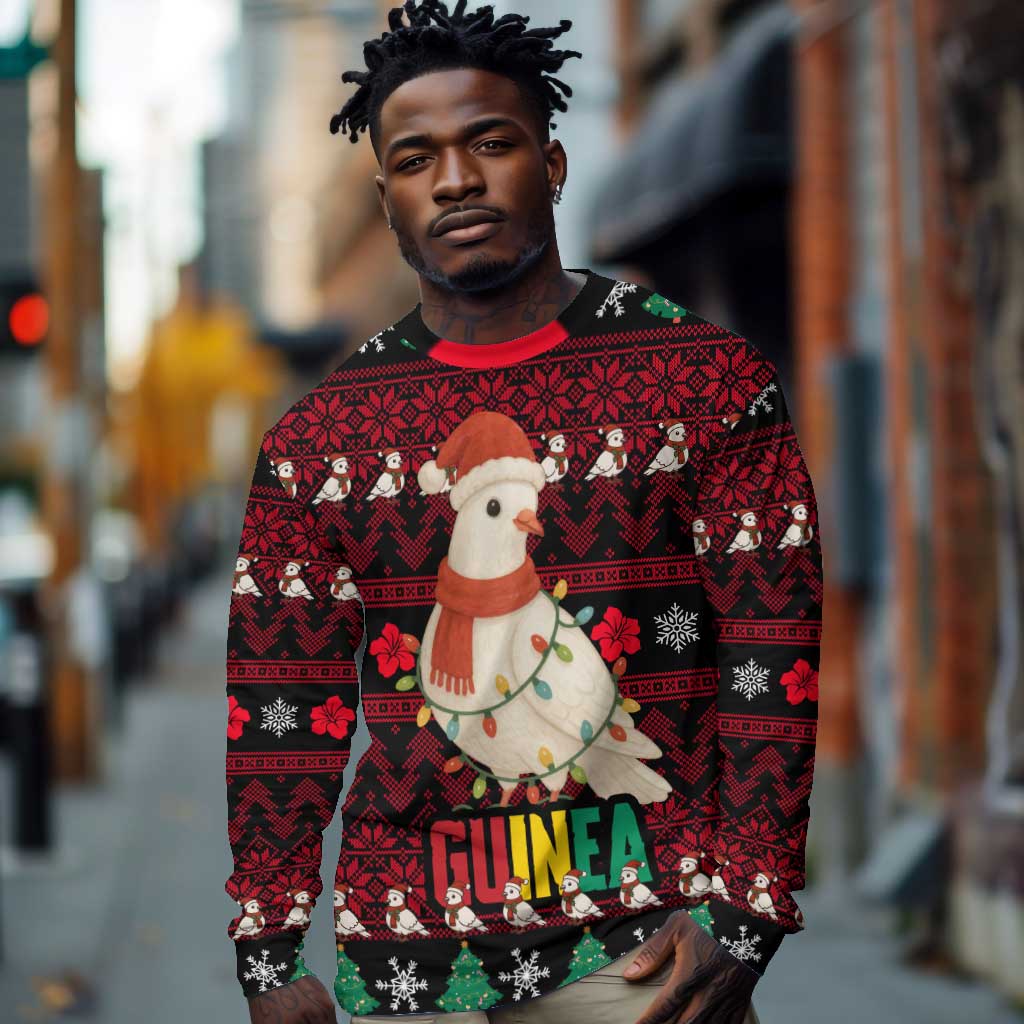 Guinea Christmas Long Sleeve Shirt Festive Dove String Lights and Red Black Holiday