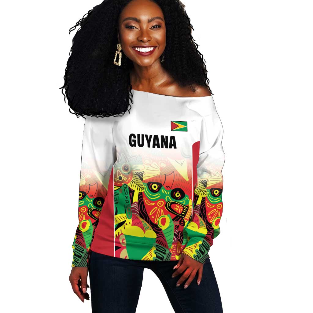 Custom Guyana Football Pride Off Shoulder Sweater Golden Jaguars Go Champion - White