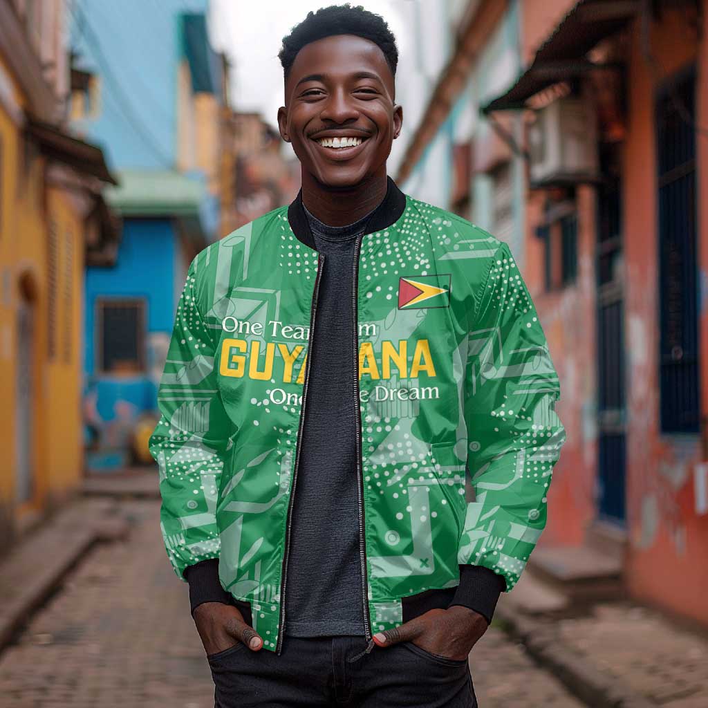 One Team One Game Guyana Football Custom Bomber Jacket Pride Of Guyana Green Version