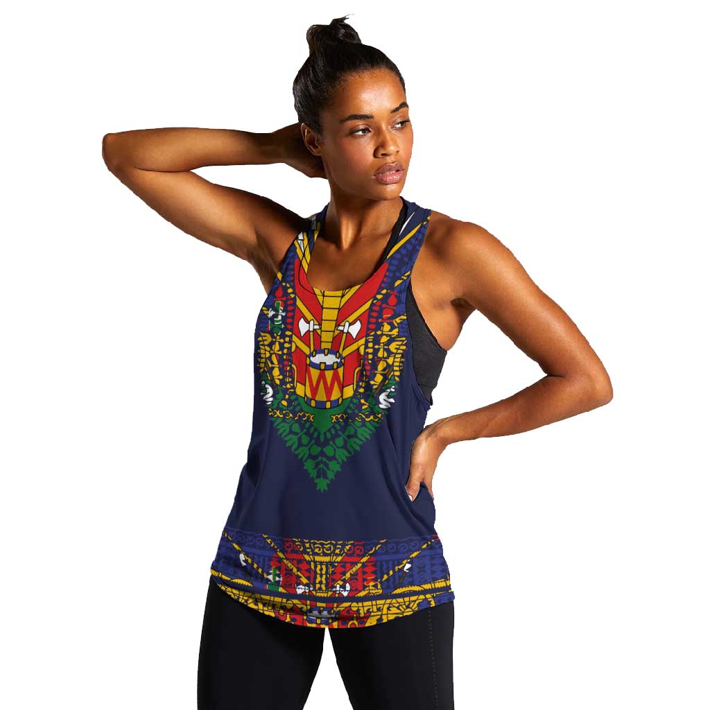 Haiti Flag Women Racerback Tank Traditional Dashiki Black Color LT03