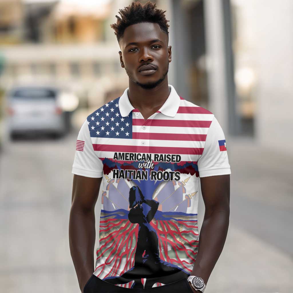 Afro Haiti Heritage Month 2025 Polo Shirt American Raised With Haitian Roots