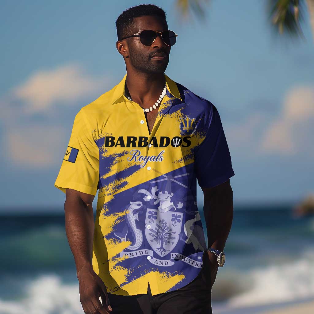 Barbados Royals Cricket Custom Hawaiian Shirt Coat Of Arms Flag Style