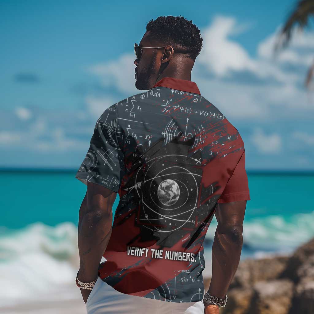 Katherine Johnson Hawaiian Shirt with Chalkboard Math Scene, Verify the Numbers Quote and Space Orbit