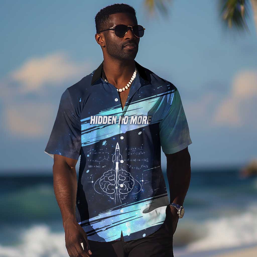 Katherine Johnson Hawaiian Shirt with Galaxy Background, Hidden No More Quote and Rocket Brain Equation