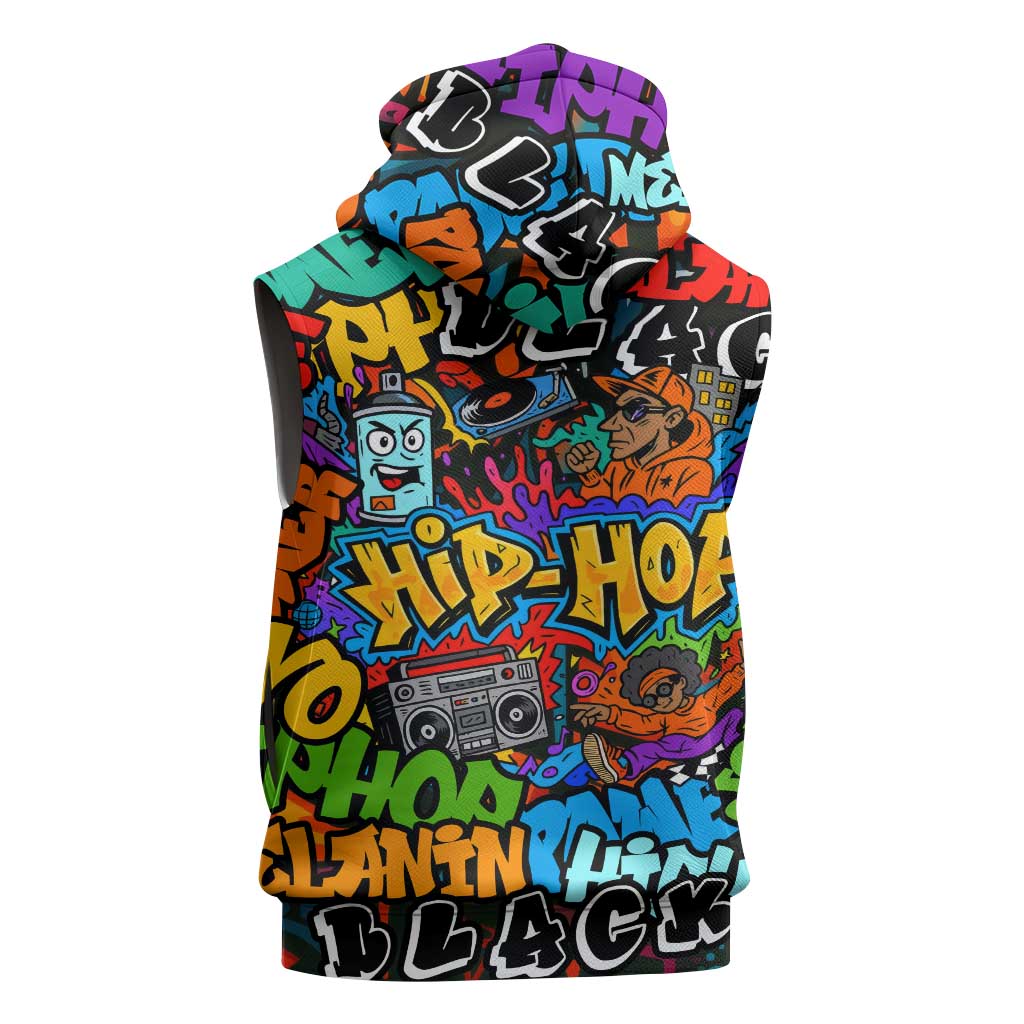 Hip Hop Graffiti African Sleeveless Zip Hoodie Black Melanin Text and Urban Street Art