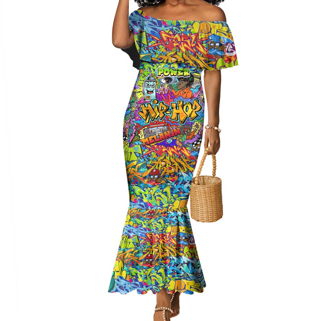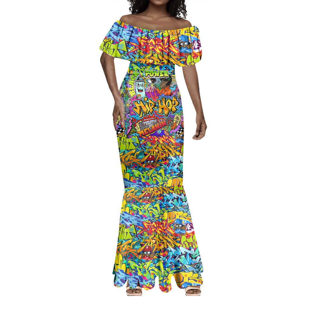 Hip Hop Graffiti Art Mermaid Dress Black Power