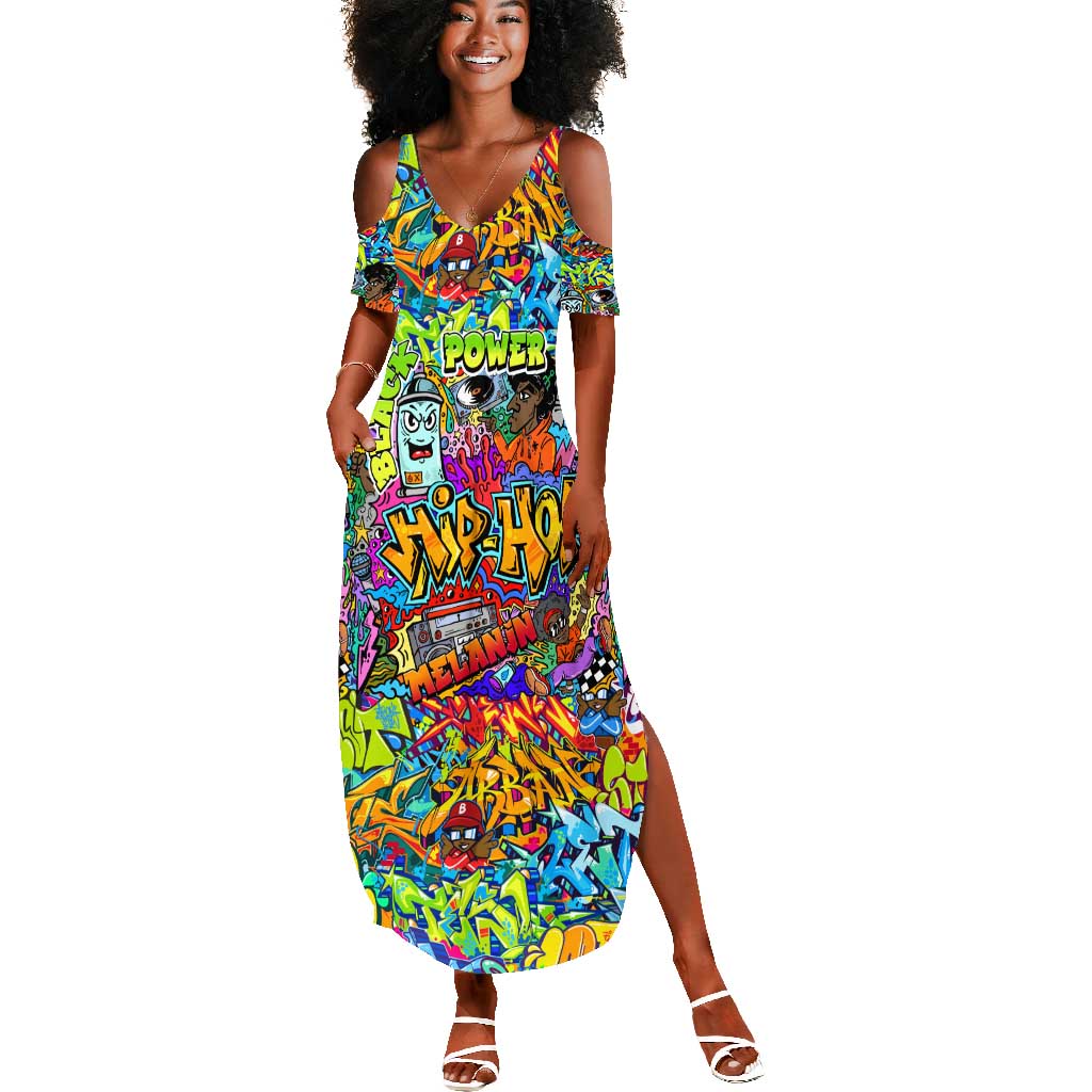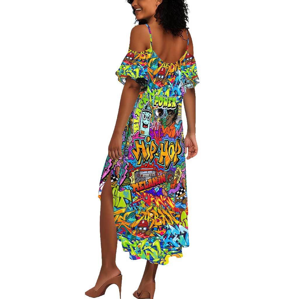 Hip Hop Graffiti Art Summer Maxi Dress Black Power