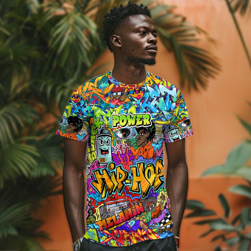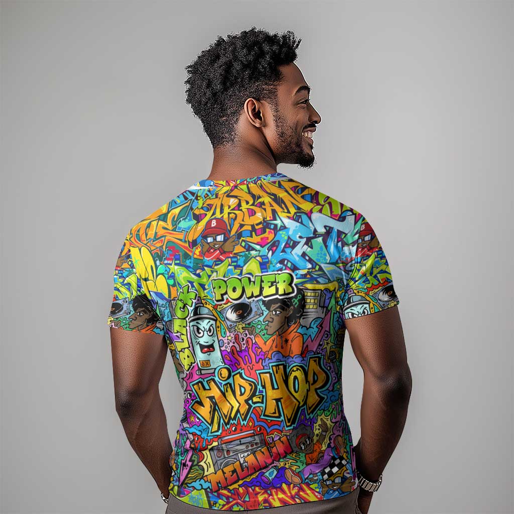 High-Resolution Artwork: High-resolution graphic artwork is printed on the entire shirt.