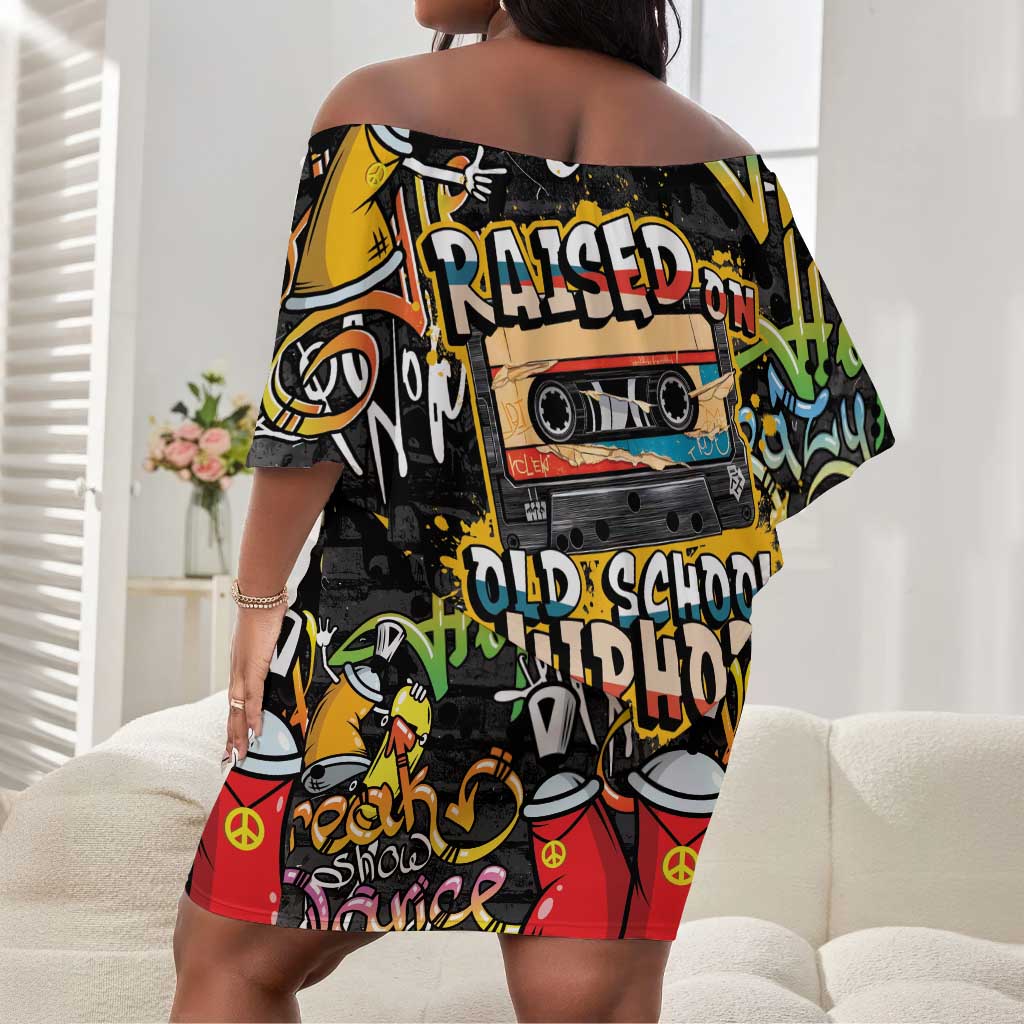 Raised On Hip Hop Off Shoulder Short Dress Graffiti Art Style