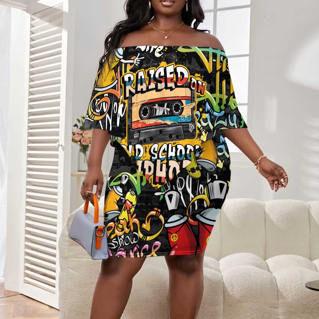 Raised On Hip Hop Off The Shoulder Long Sleeve Dress Graffiti Art Style