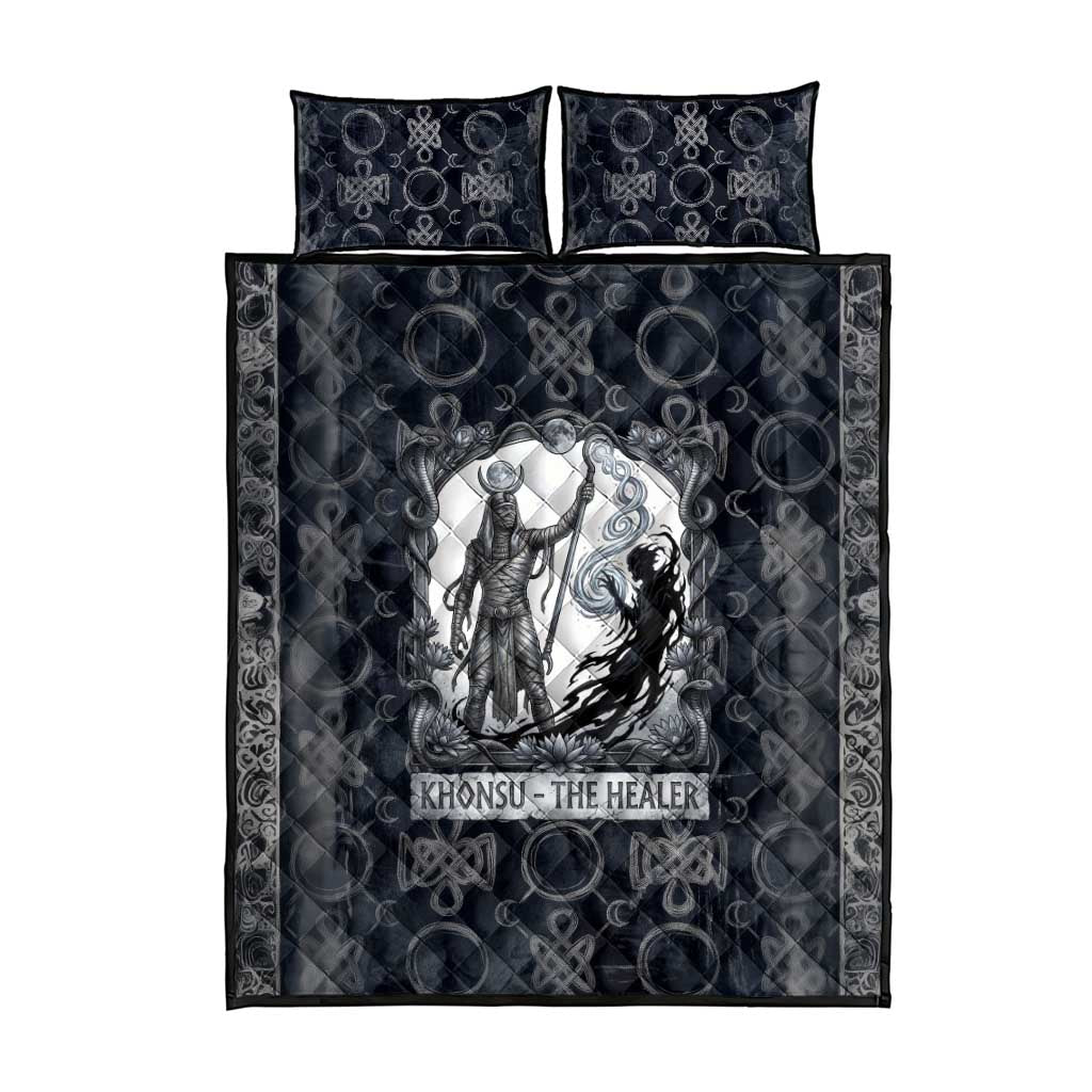 Khonsu Ancient Egyptian Quilt Bed Set with Dark Celtic Knot Pattern, Baboon Guardian Symbol, and Moon Healer Motif