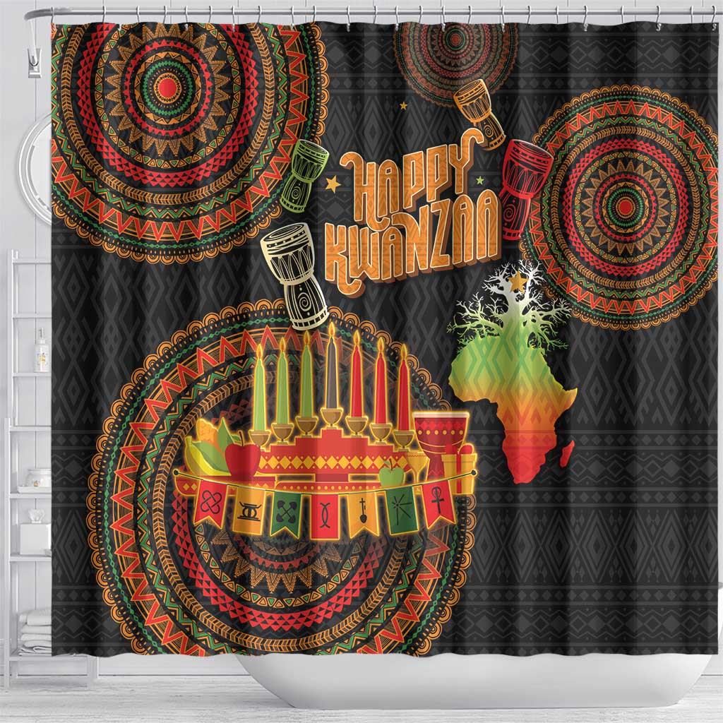 Kwanzaa Kinara Candles Shower Curtain African Tribal Pattern