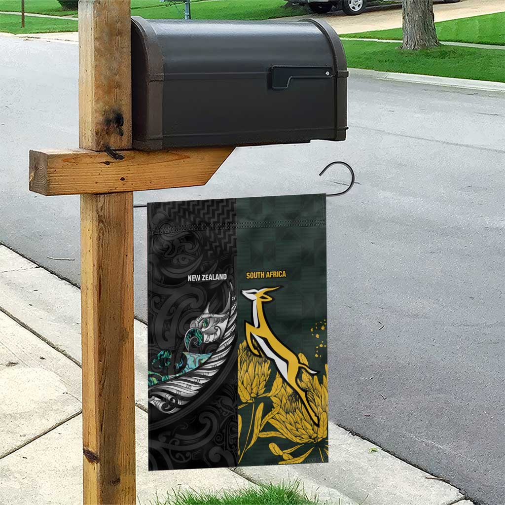 New Zealand vs South Africa Rugby Garden Flag Maori - African Pattern